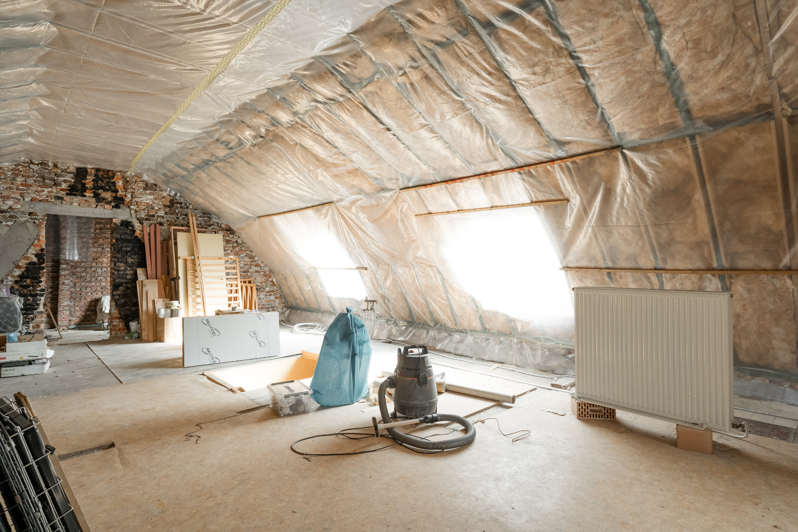is een nieuw gesoleerd dak en nog in te richten naar eigen wens.