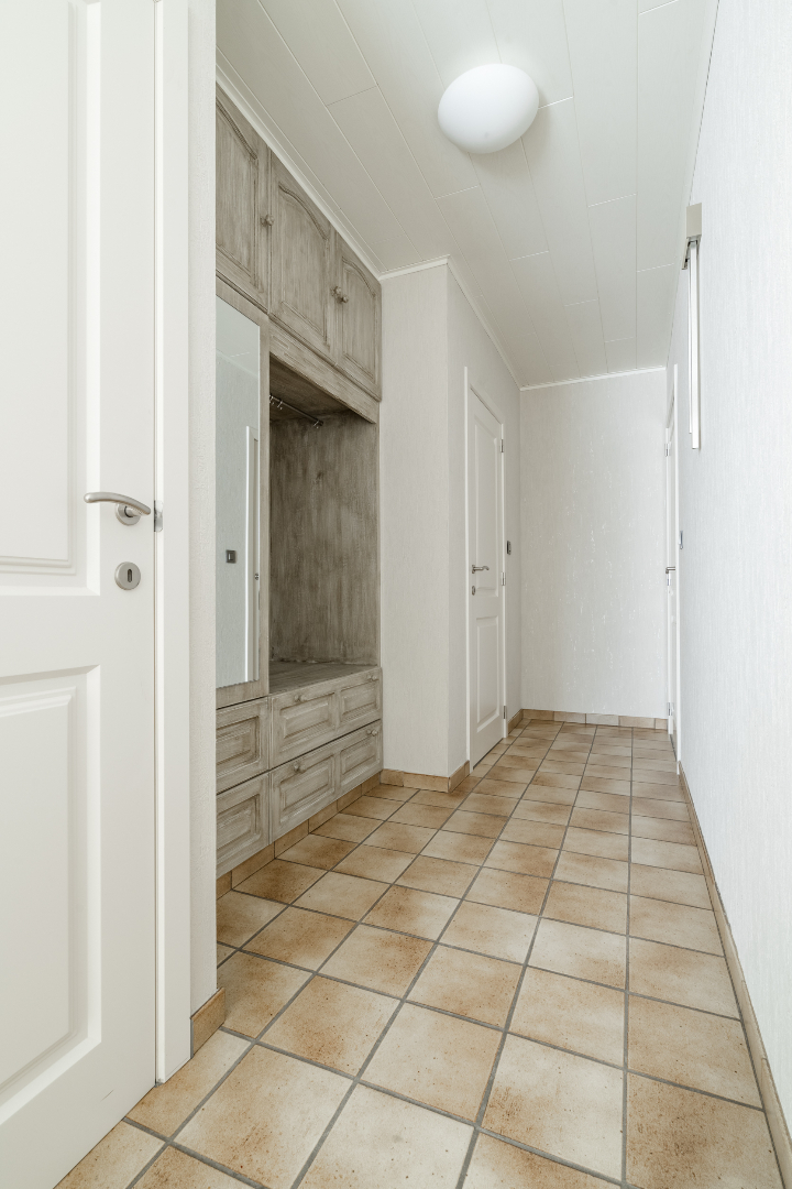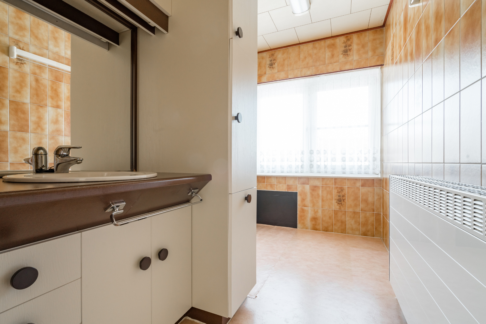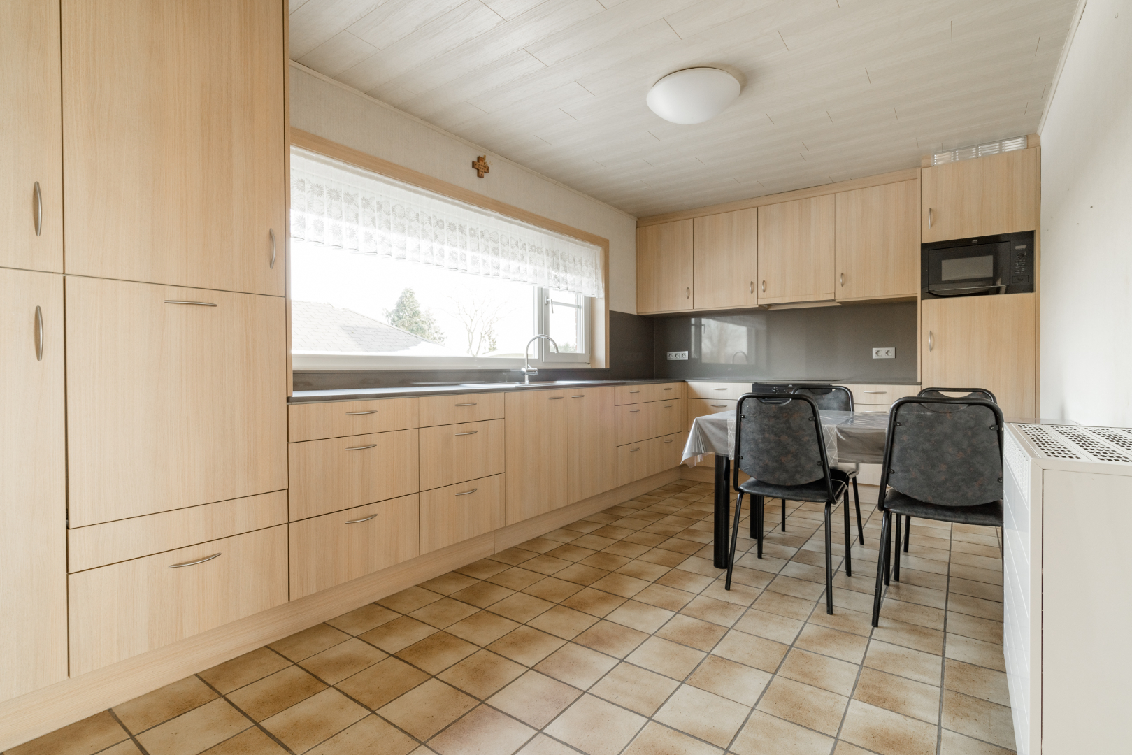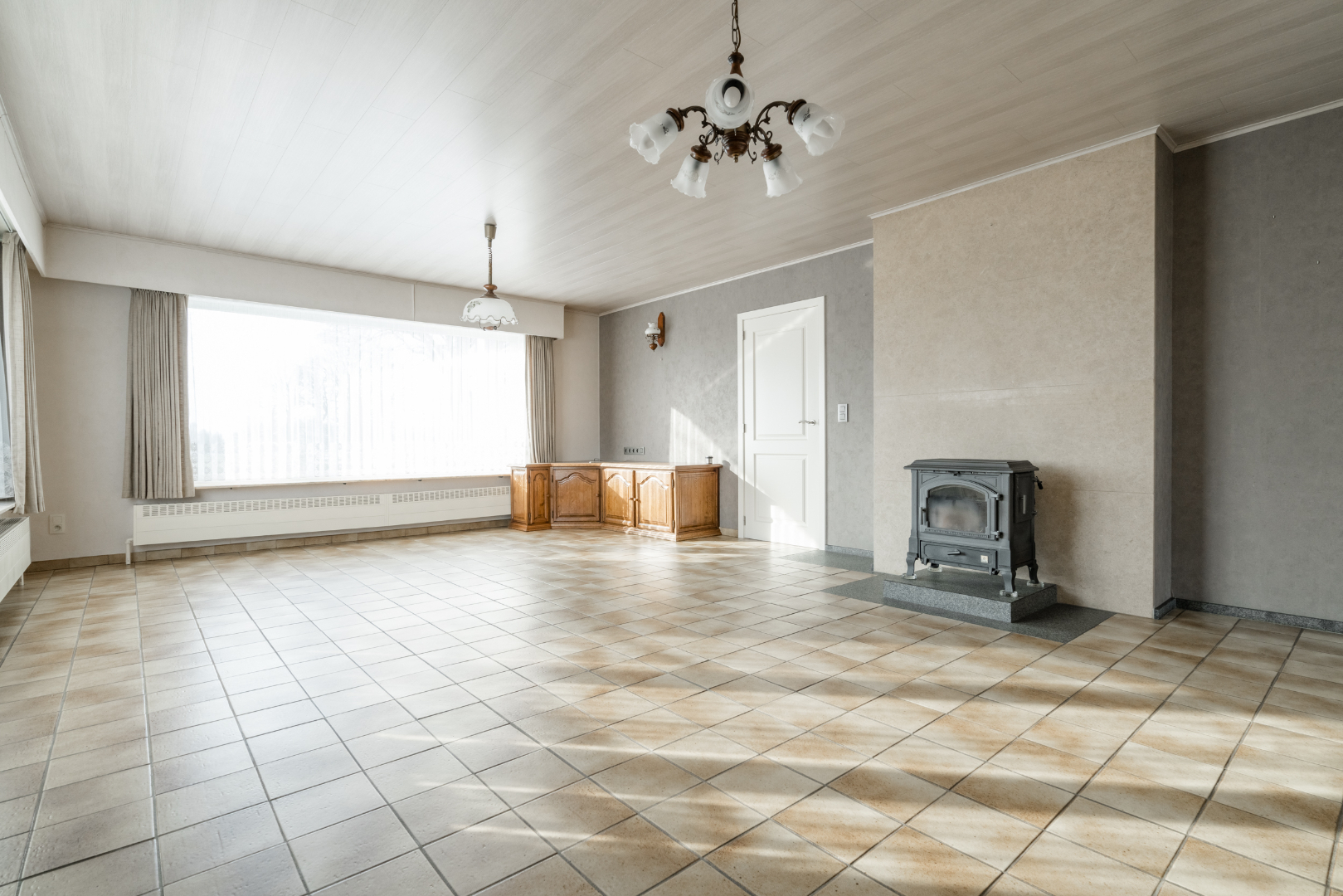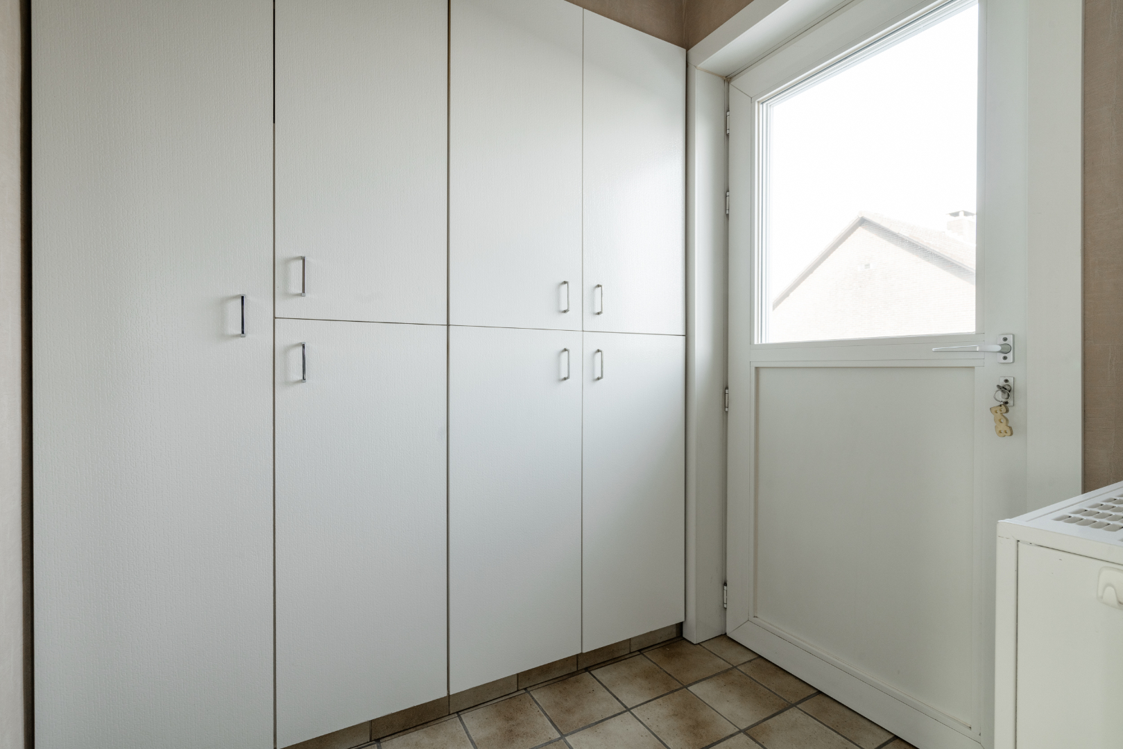 Niveau 0: Inkomhal, woonkamer, gerenoveerde keuken, bijkeuken met inbouwkasten