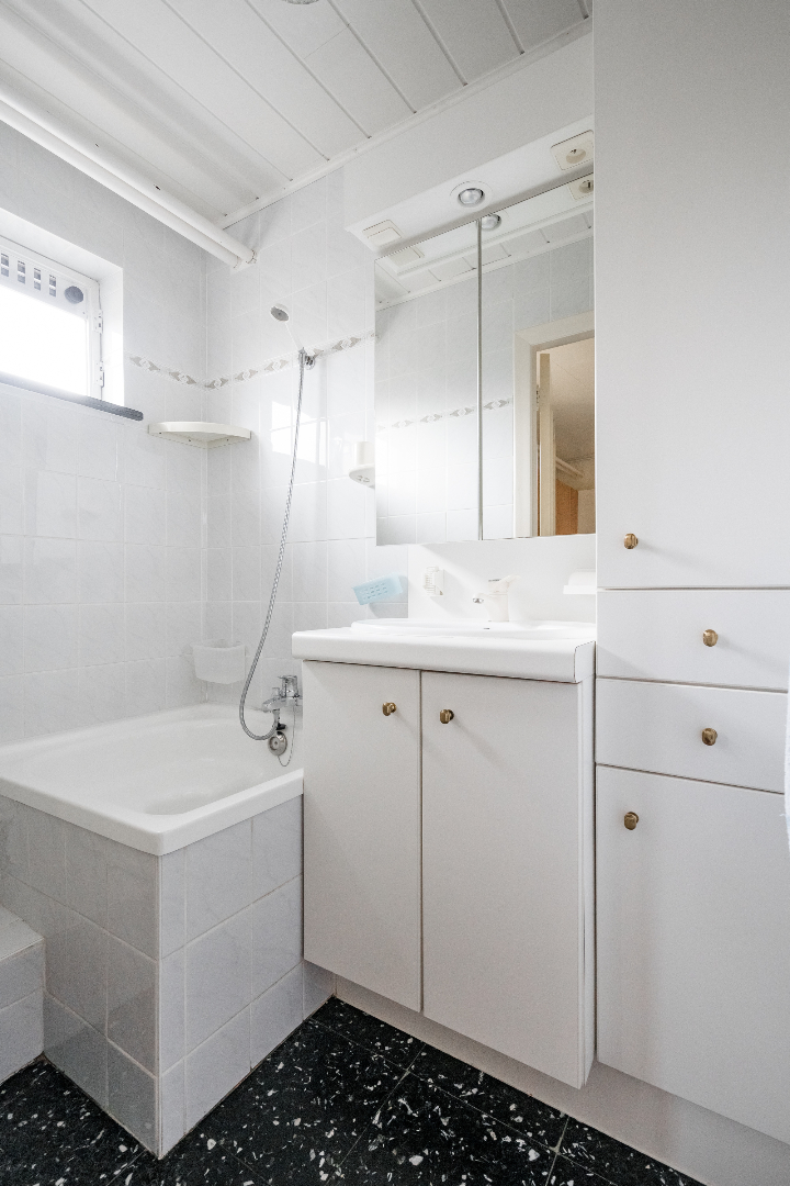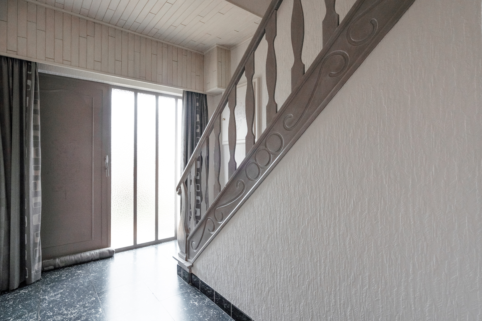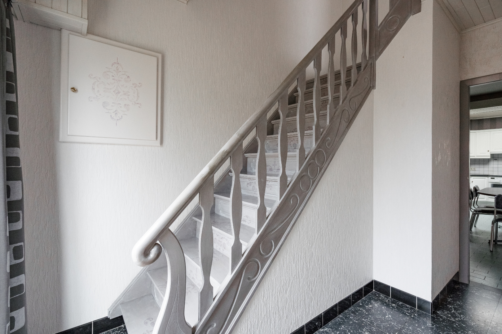 Indeling: Inkomhal met trap, woonkamer (30m²), bureel, veranda, keuken (uitgerust met frigo, elektrisch vuur, combi-oven, oven en een dampkap), berging, badkamer, toilet en een gelijkvloerse slaapkamer van 12m².