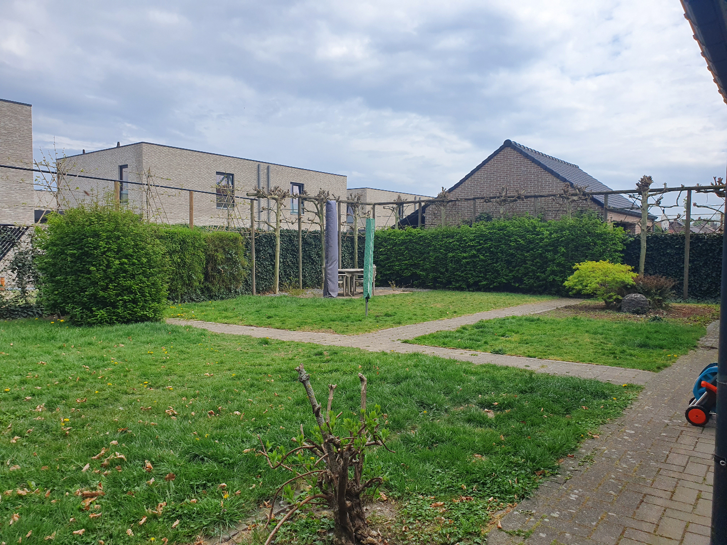 Tuin: Volledig omheind, carport aanwezig, leilinden geplaatst voor een mooie privatieve tuin in de zomer.