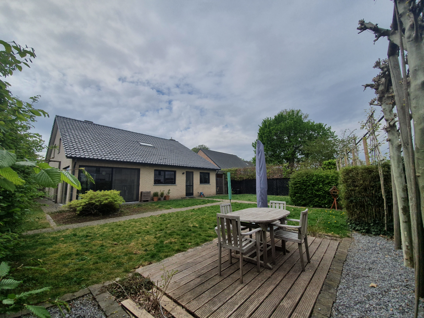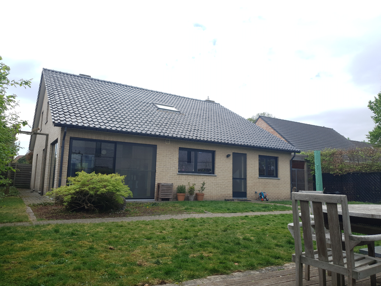 Indeling: Inkomhal, woonkamer met open keuken, berging, veranda, sas, wasplaats, badkamer, inpandige garage