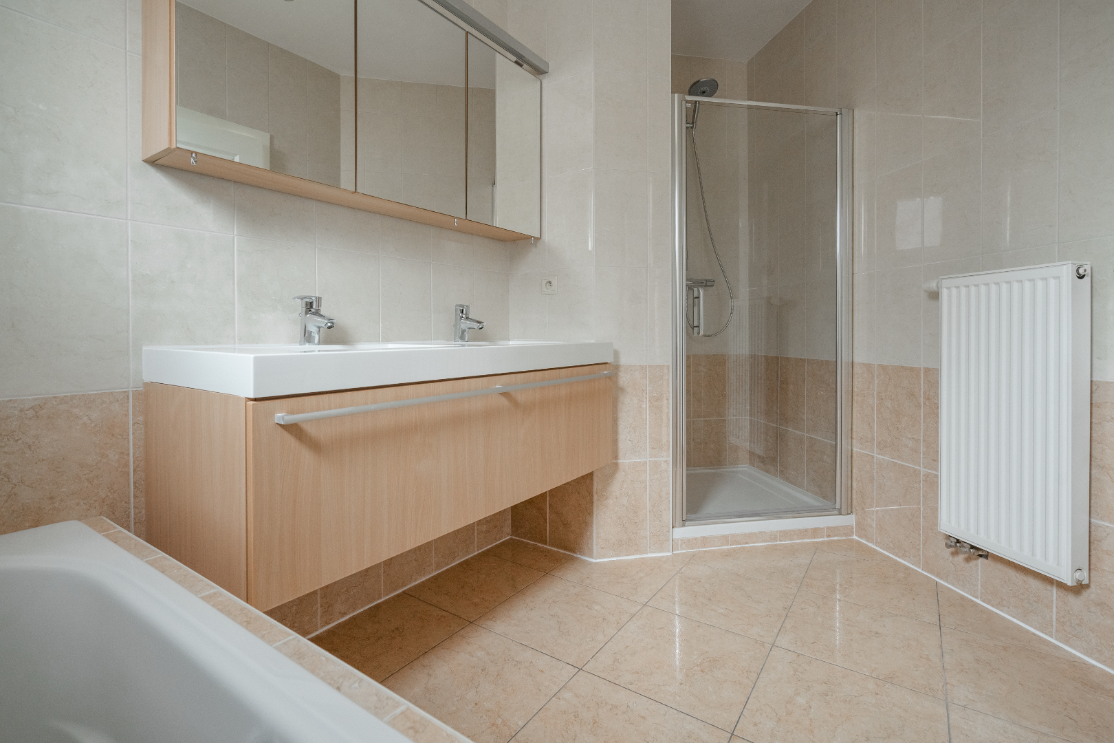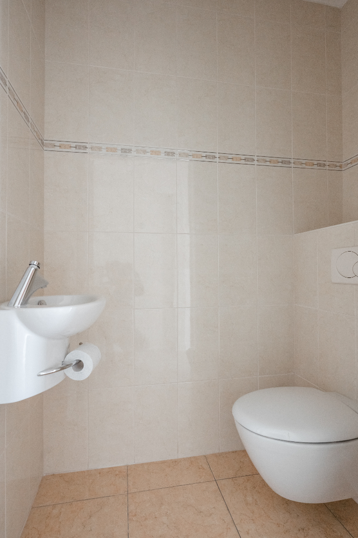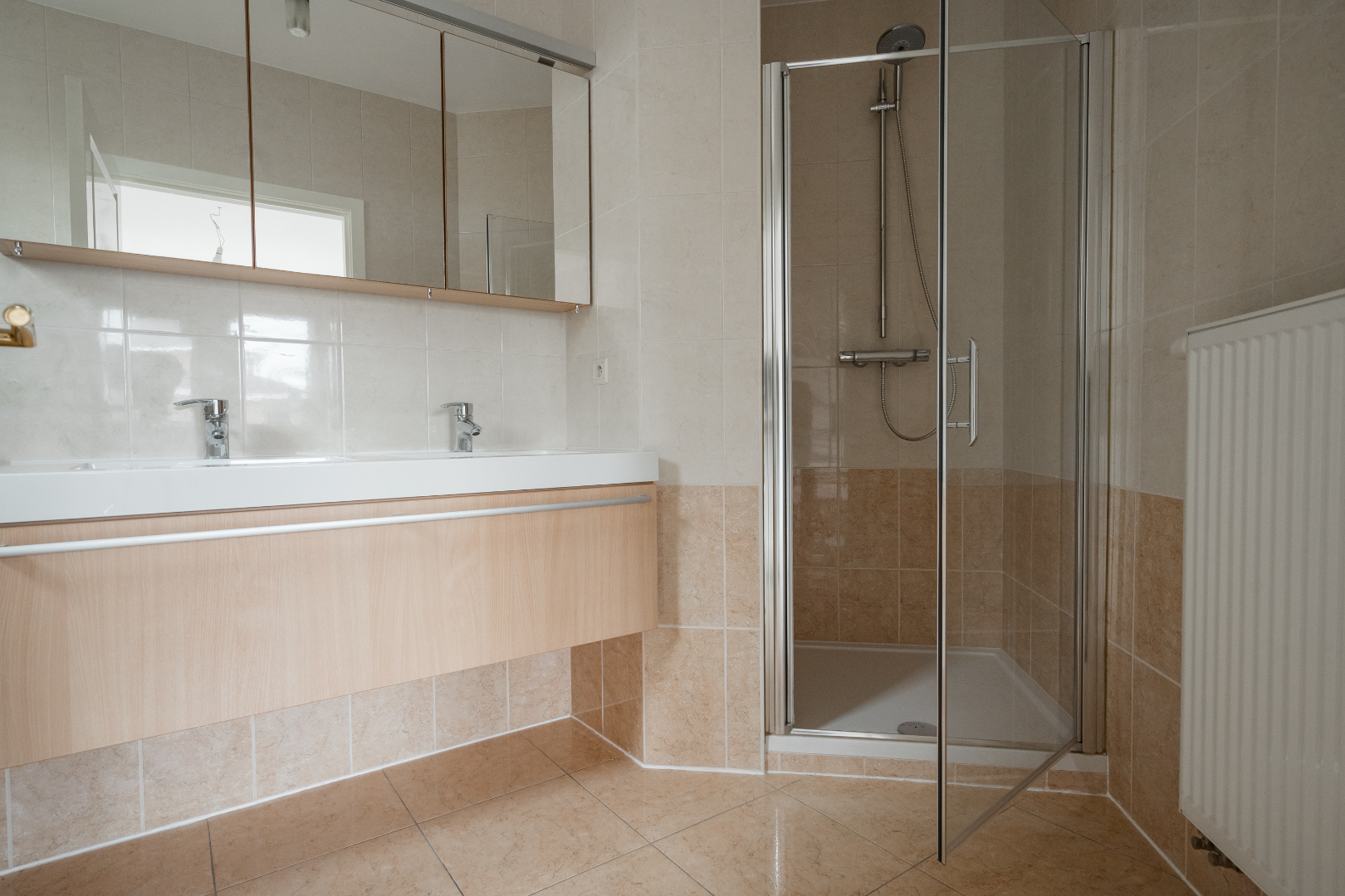 Berging onder het dak aan de linkerzijde, ruime badkamer voorzien van ligbad en douche en een lavabo en twee ruime slaapkamers.