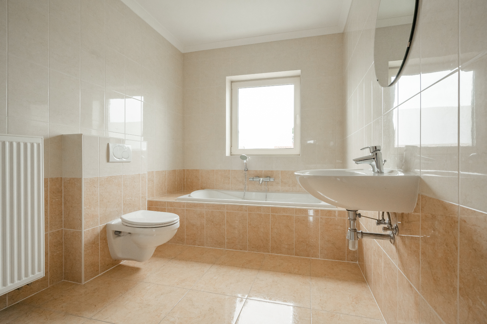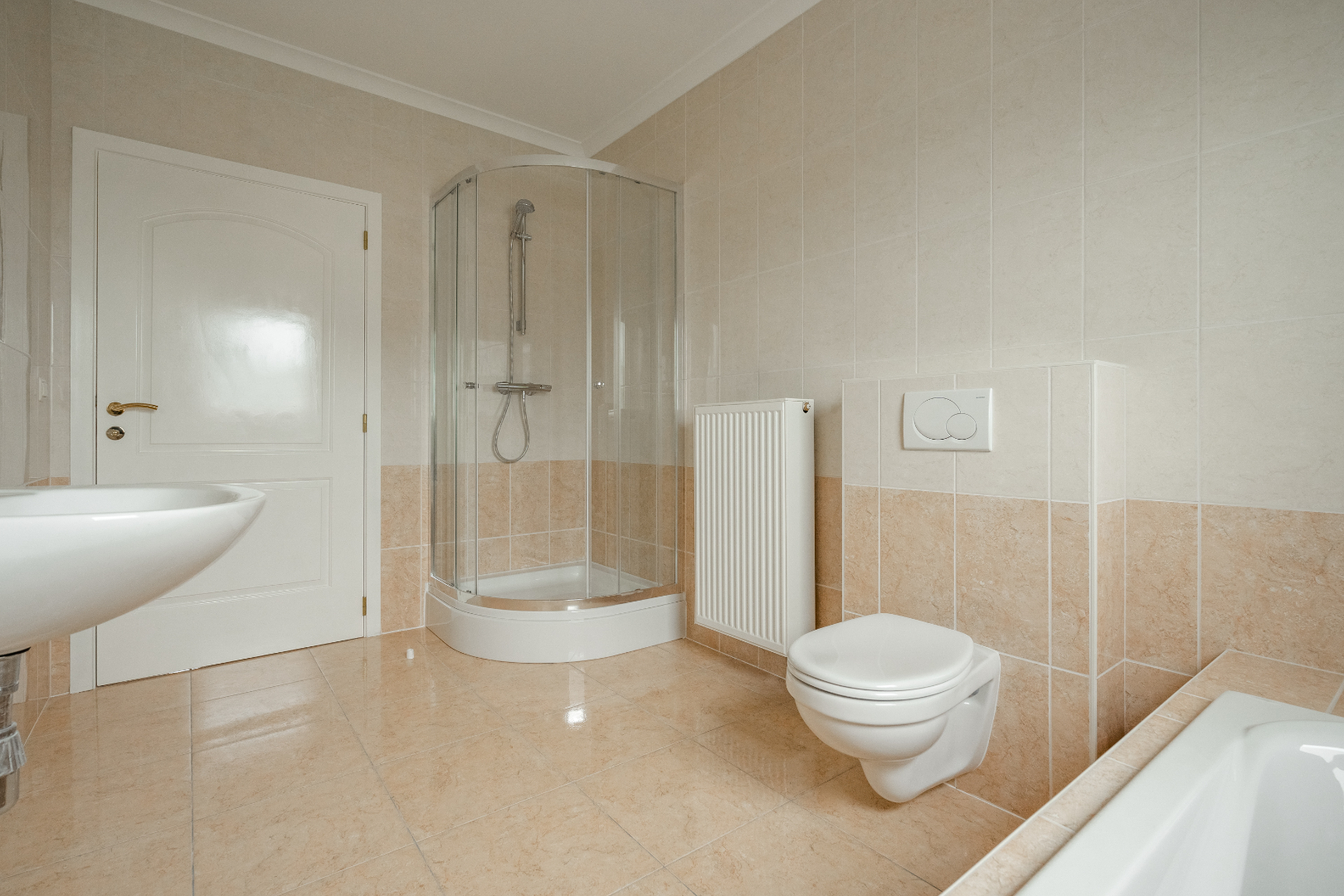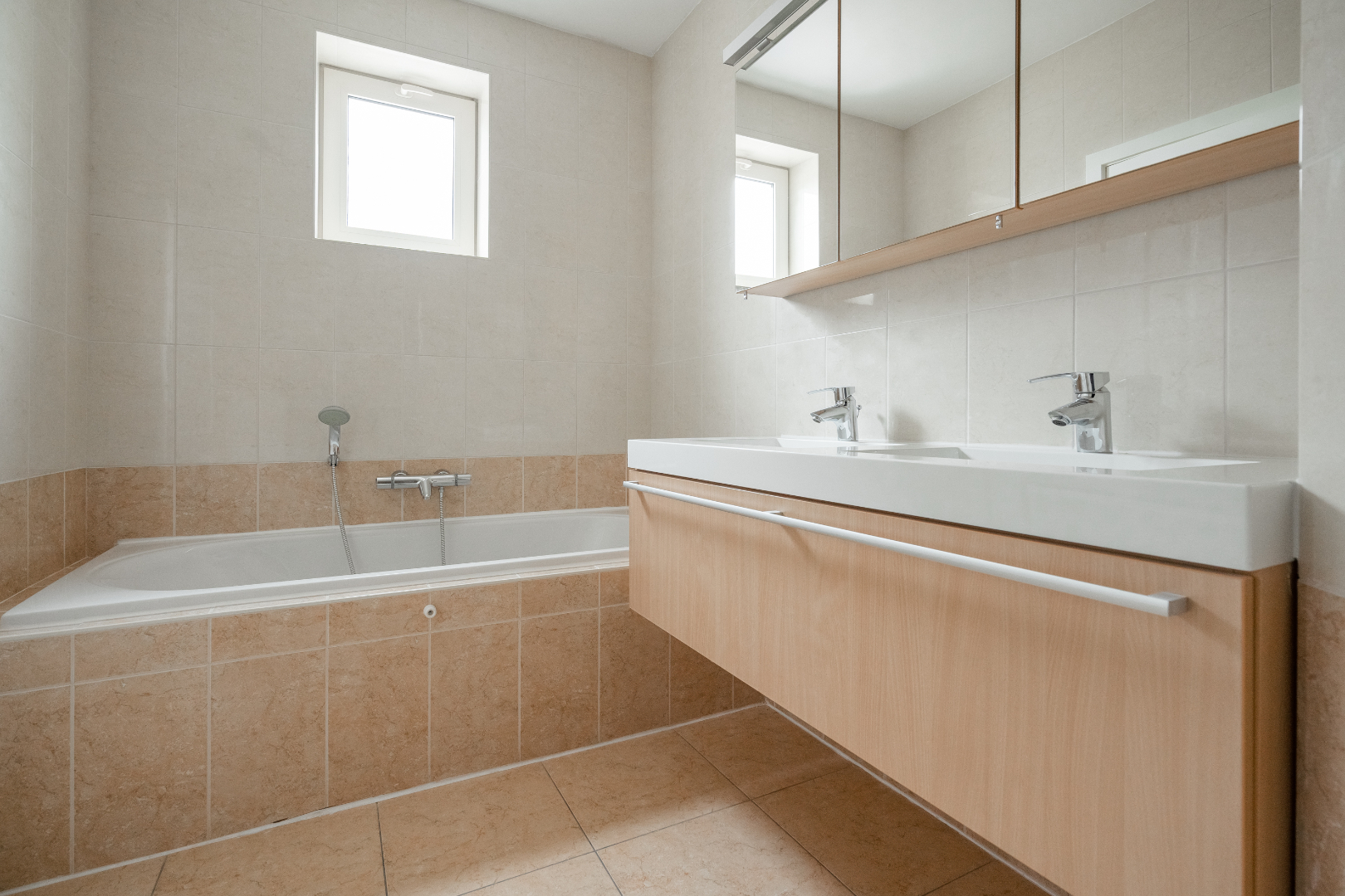 Berging onder het dak aan de linkerzijde, ruime badkamer voorzien van ligbad en douche en een lavabo en twee ruime slaapkamers.