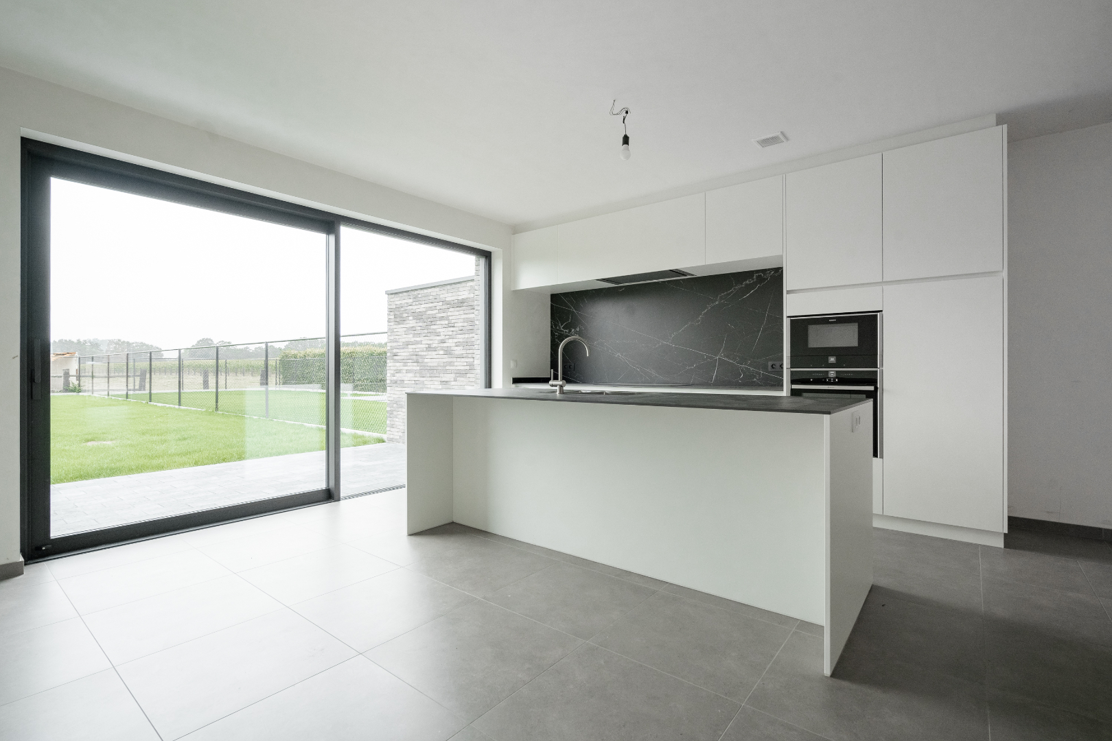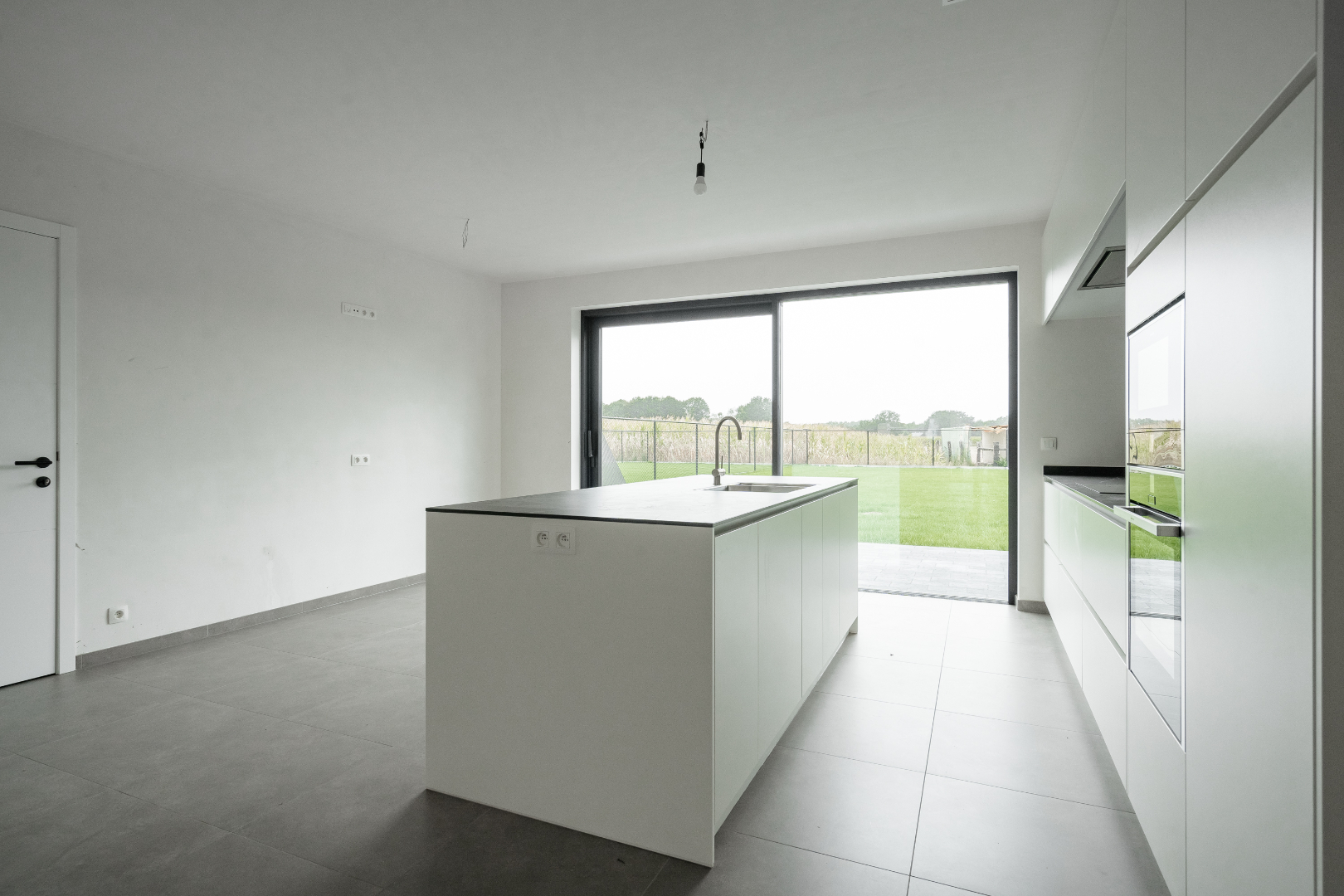 Vanuit de keuken heeft u ook zicht op de tuin en de achterliggende weilanden.