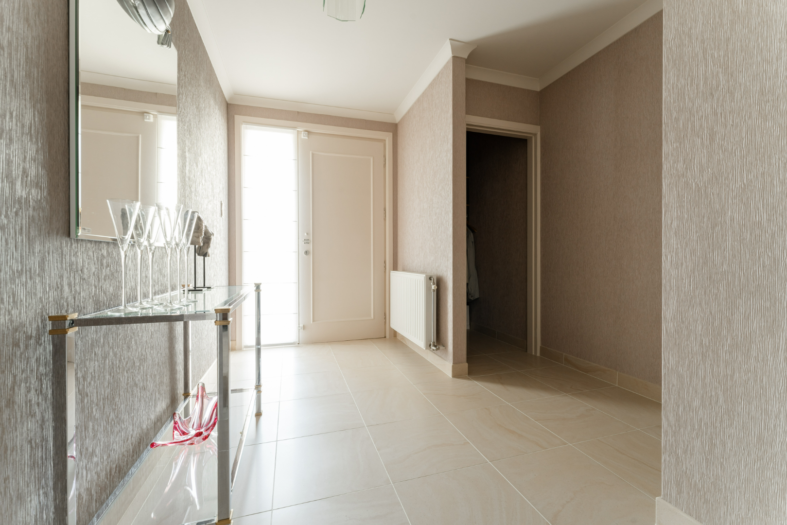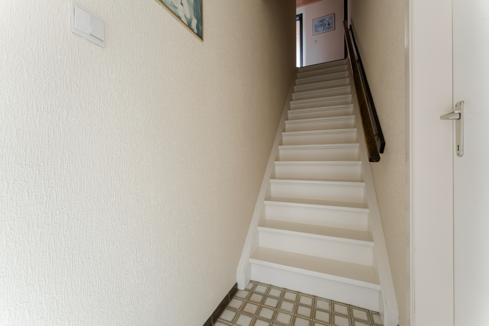 De woning heeft een grote inkomhal met vestiaire. Van hieruit komt u in de ruime leefruimte terecht die aansluit op de keuken. Op het gelijkvloers bevinden zich ook nog een badkamer, apart toilet, berging, slaapkamer en een aangebouwde veranda in het jaar 2000 die zicht geeft op de mooie tuin.