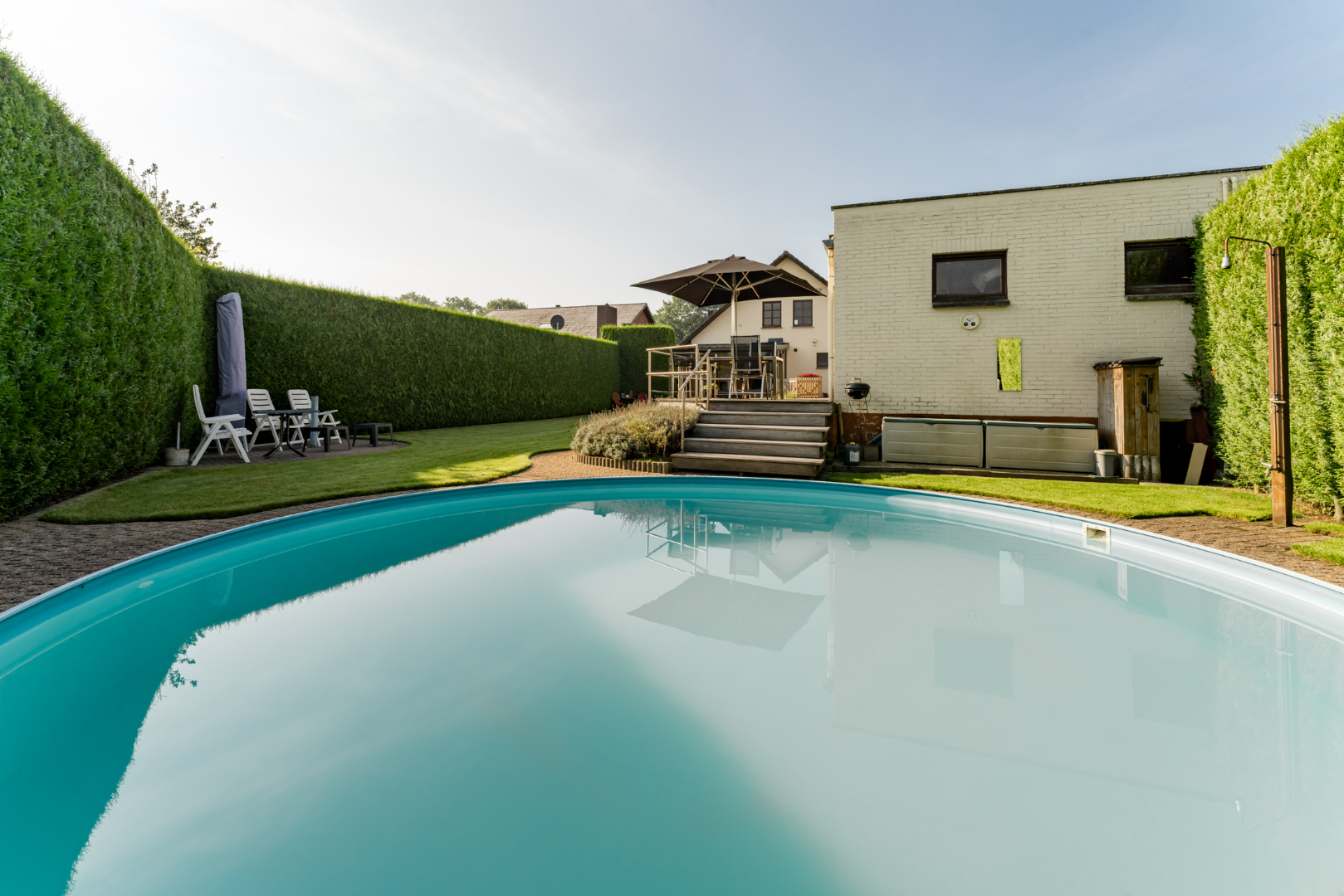 Op deze rustig gelegen locatie kan u genieten van een prachtige tuin met ingebouwd zwembad.