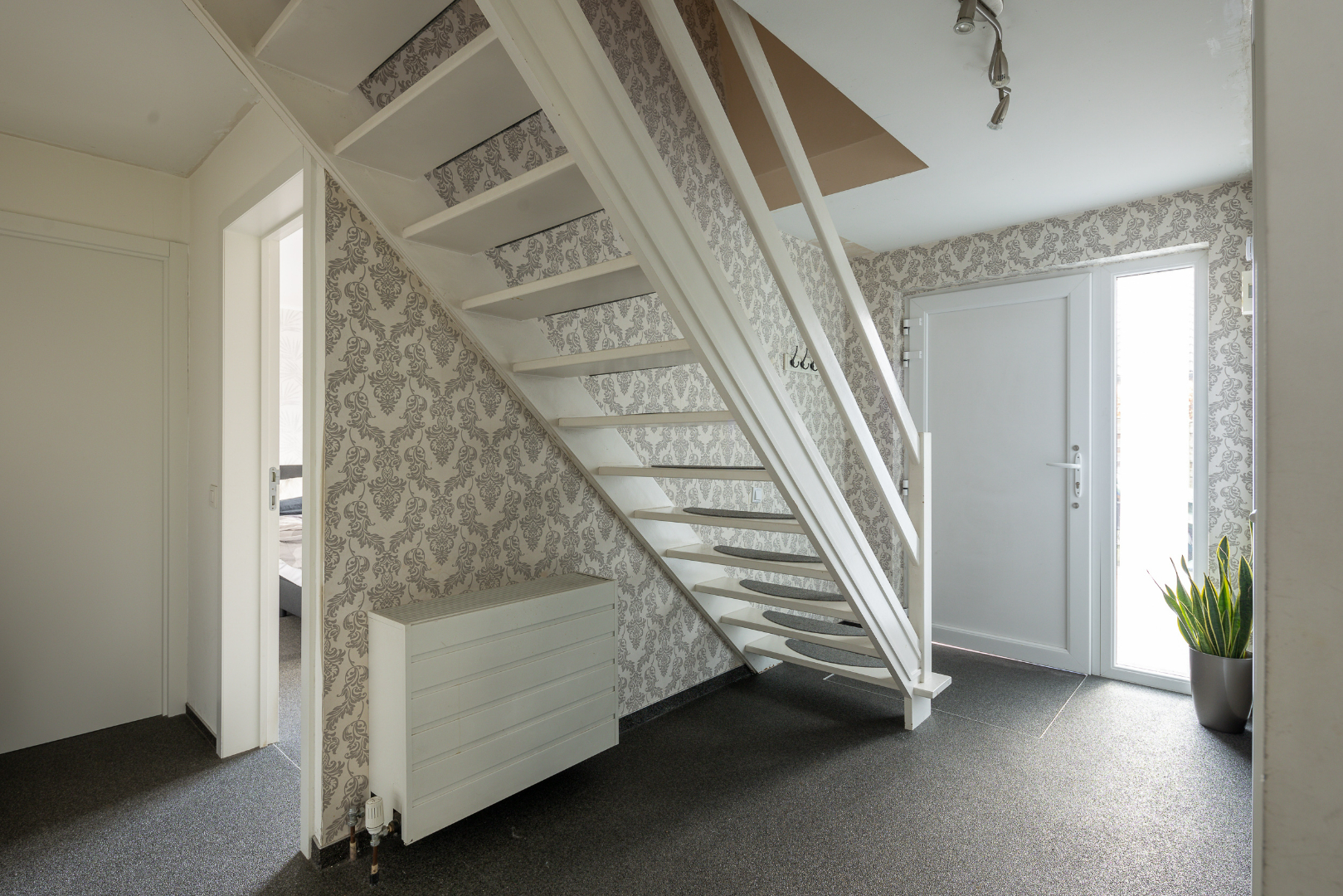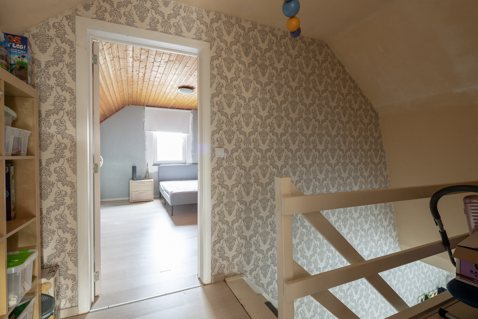 Eenmaal in de woning, is er toegang naar boven, naar de badkamer, naar slaapkamer 1 en 2 alsook naar een bergruimte en de open leefruimte.