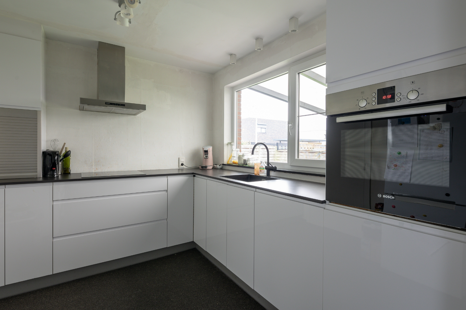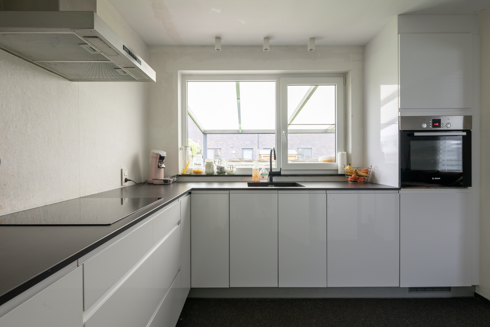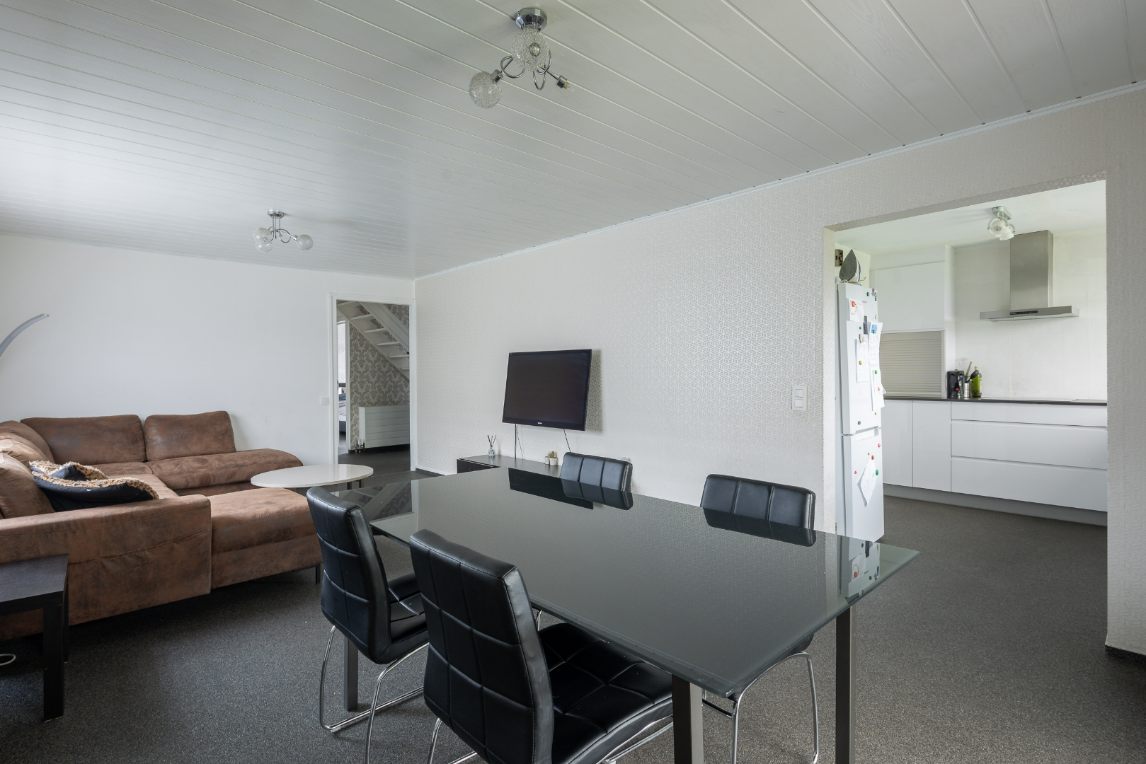 In de open leefruimte is er plaats voor een groot zitmeubel, een ruime eettafel en is er de doorgang naar de keuken. De keuken is volledig vernieuwd in 2017, waarin zowel een oven, vaatwasser, spoelbak, vuur als dampkap aanwezig zijn.