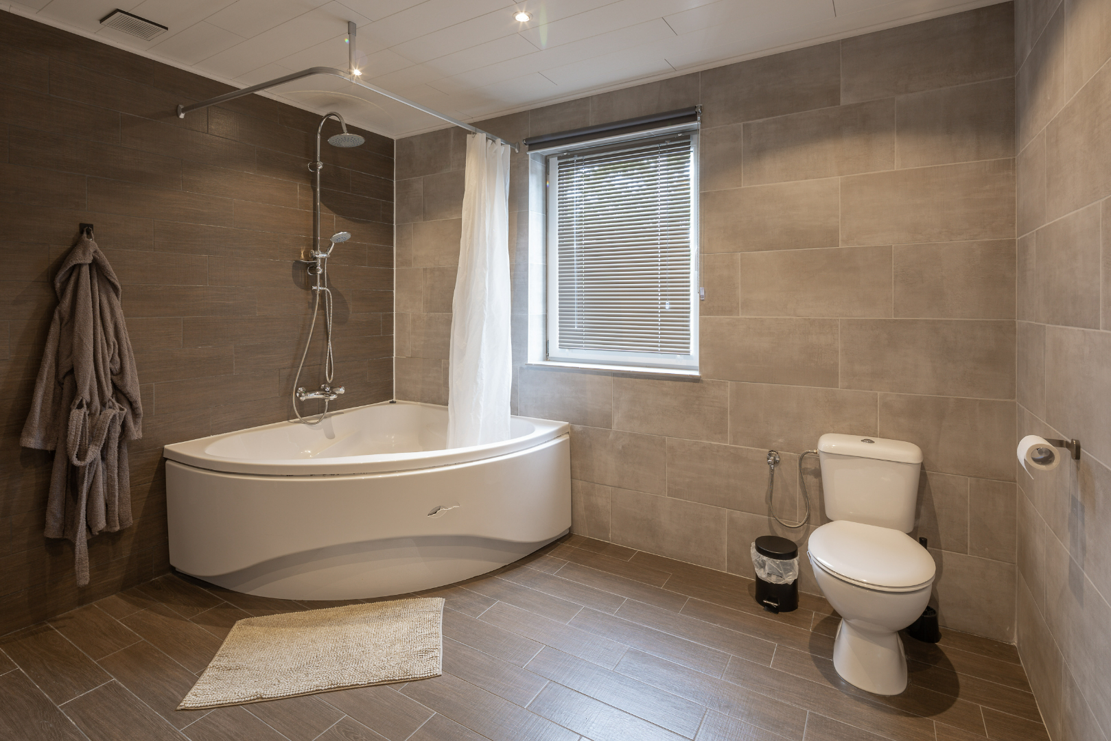 De keuken is goed uitgerust met een vuur, dampkap, koelkast met vriesvak, dubbele spoelbak en combi oven/micro. De badkamer heeft een hoekbad, een douche en dubbele spoelbak.