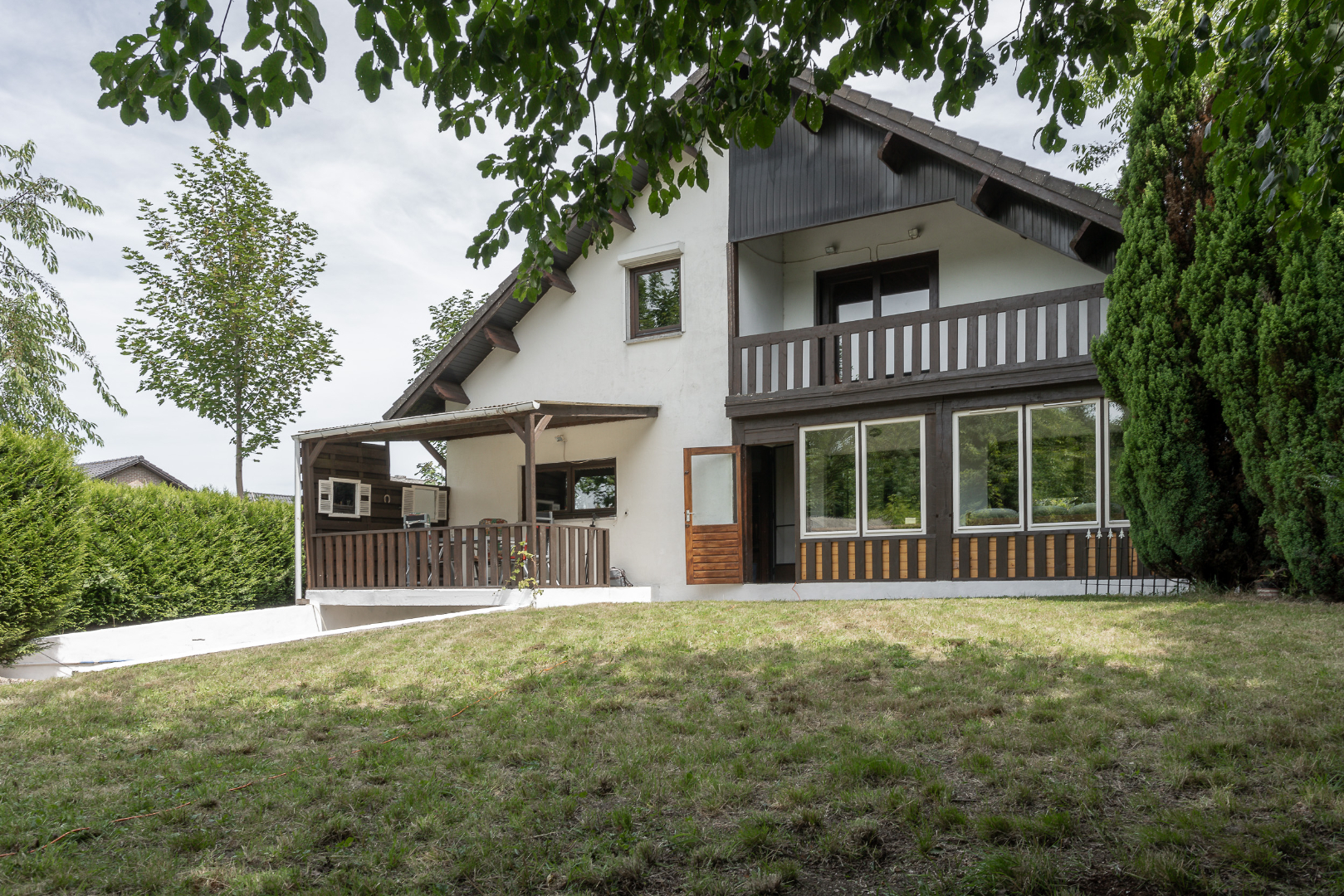 Rustig gelegen woning op een bouwperceel van 12 are met achterliggende grond van 92 are met een totale oppervlakte van 1,04 hectare. De achterliggende grond mag als weiland gebruikt worden en omheind/bebouwd worden conform de regels van de gemeente. De achterkant van het perceel is bereikbaar via servitude weg aan de linkse kant van de woning.