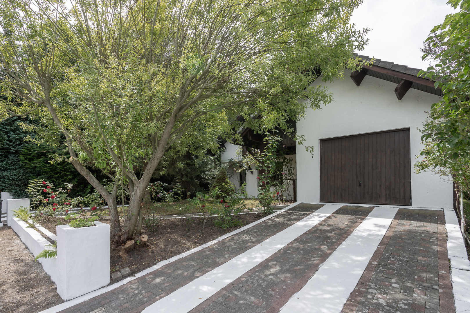 De woning bestaat uit een inkomhal voor, inpandige garage, toilet apart, woonkamer, keukenhoek, sanitaire ruimte (douche/gasketel), trap naar boven, 3 slaapkamers, badkamer (bad/douche combinatie, toilet), zolder. Kelder.