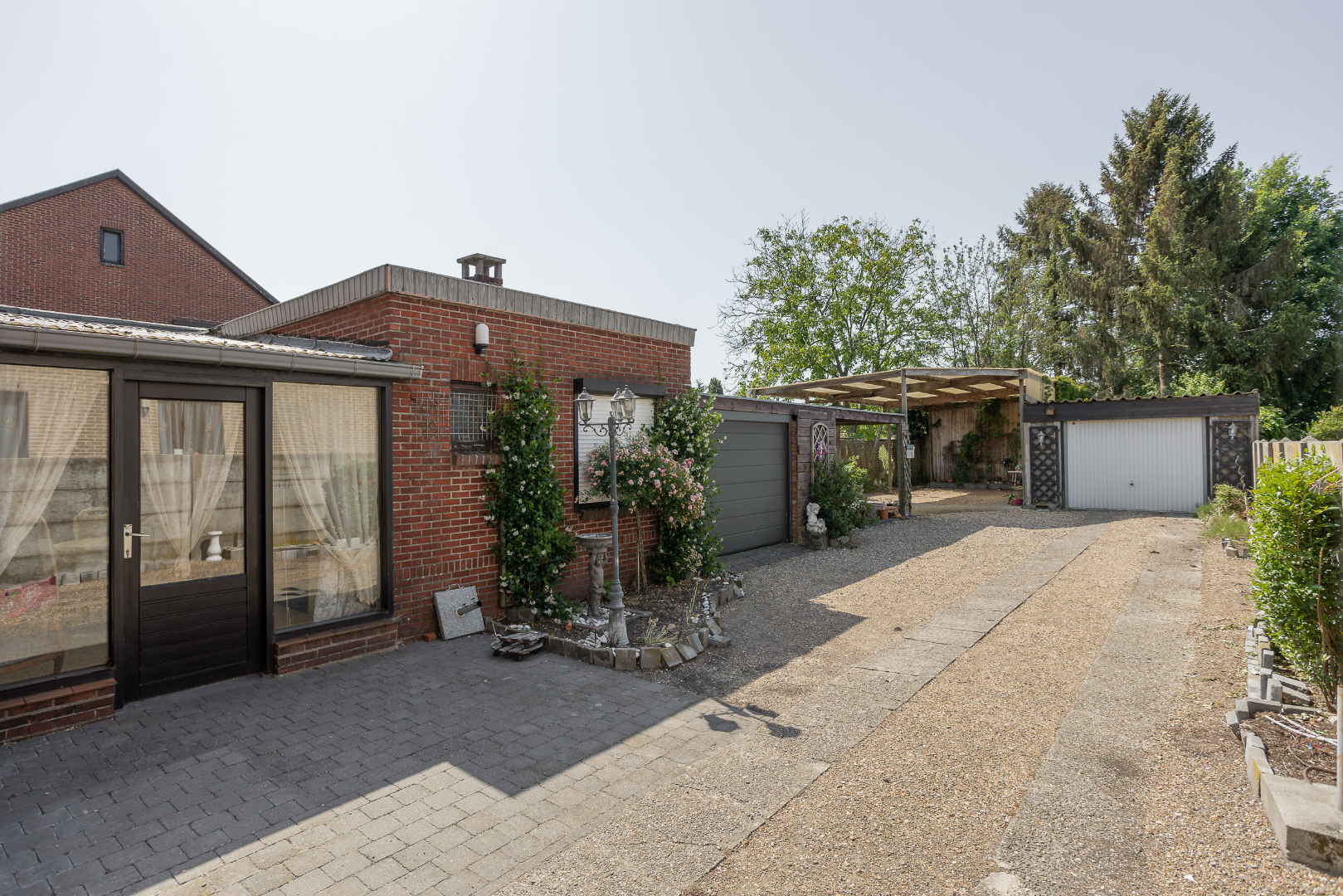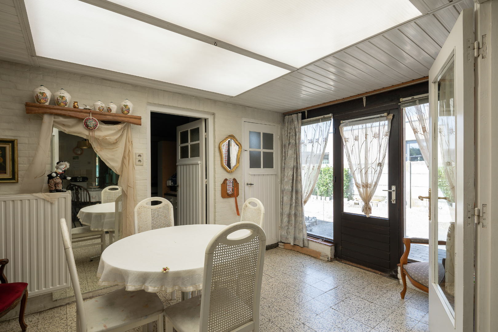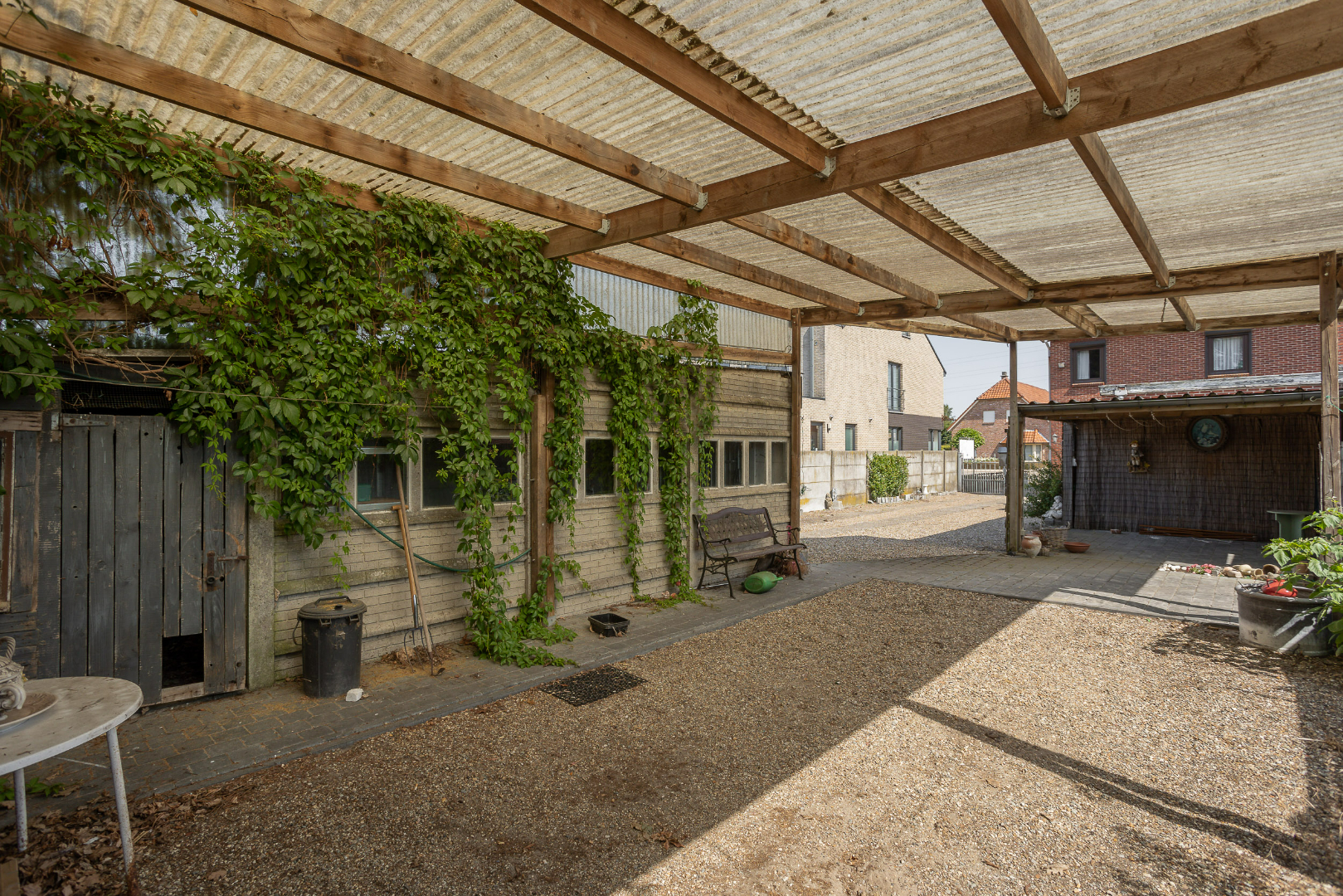 Gelijkvloers heeft de woning een ruime inkomhal, open leefruimte, keuken, toilet, berging en veranda. Verder is er ook nog een deel onderkelderd, beschikt de woning over meerdere garages, een carport alsook een leuk zitgedeelte. Als dit alles niet genoeg is, is er nog een heel groot stuk tuin dat zelf nog volledig ingericht kan worden.