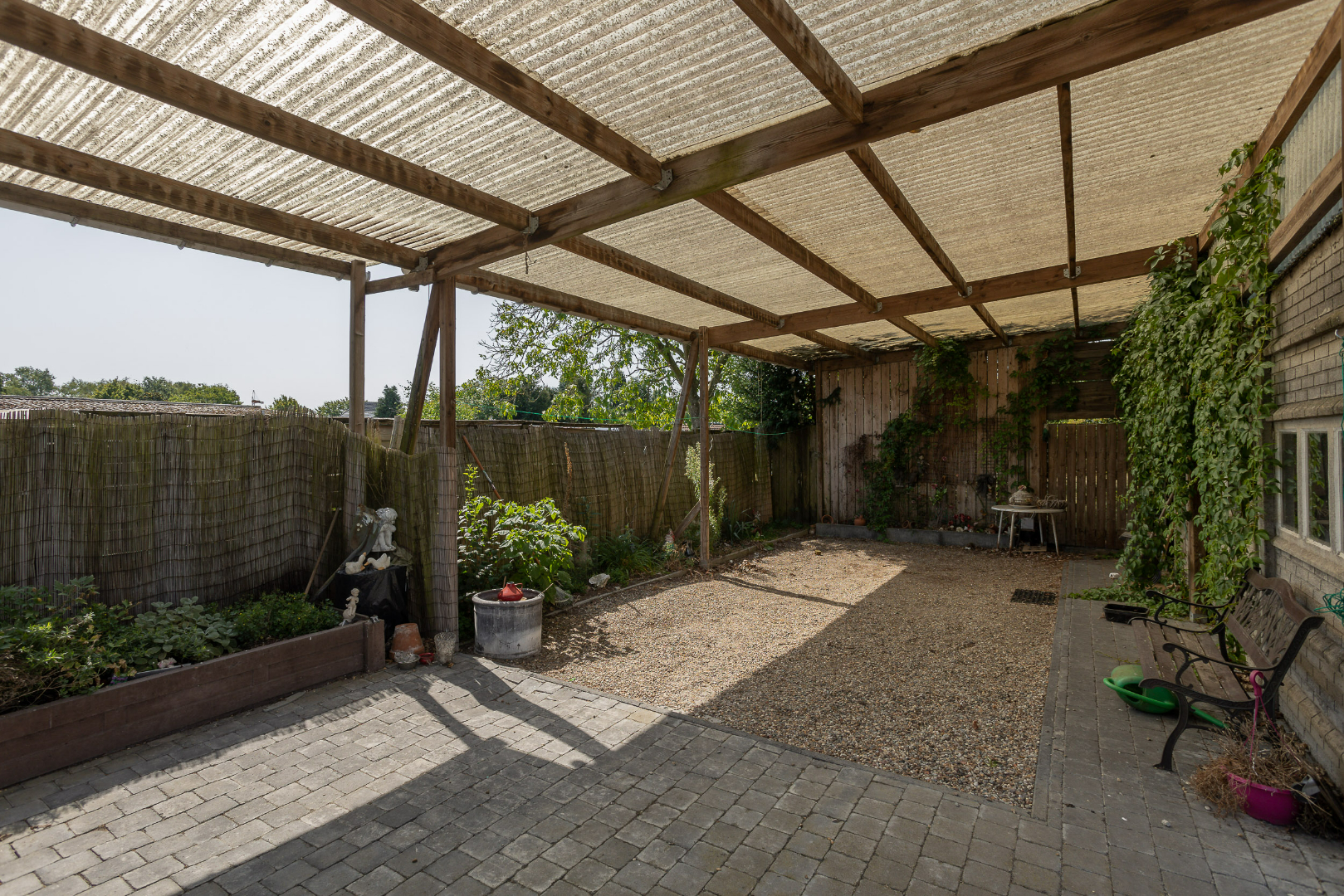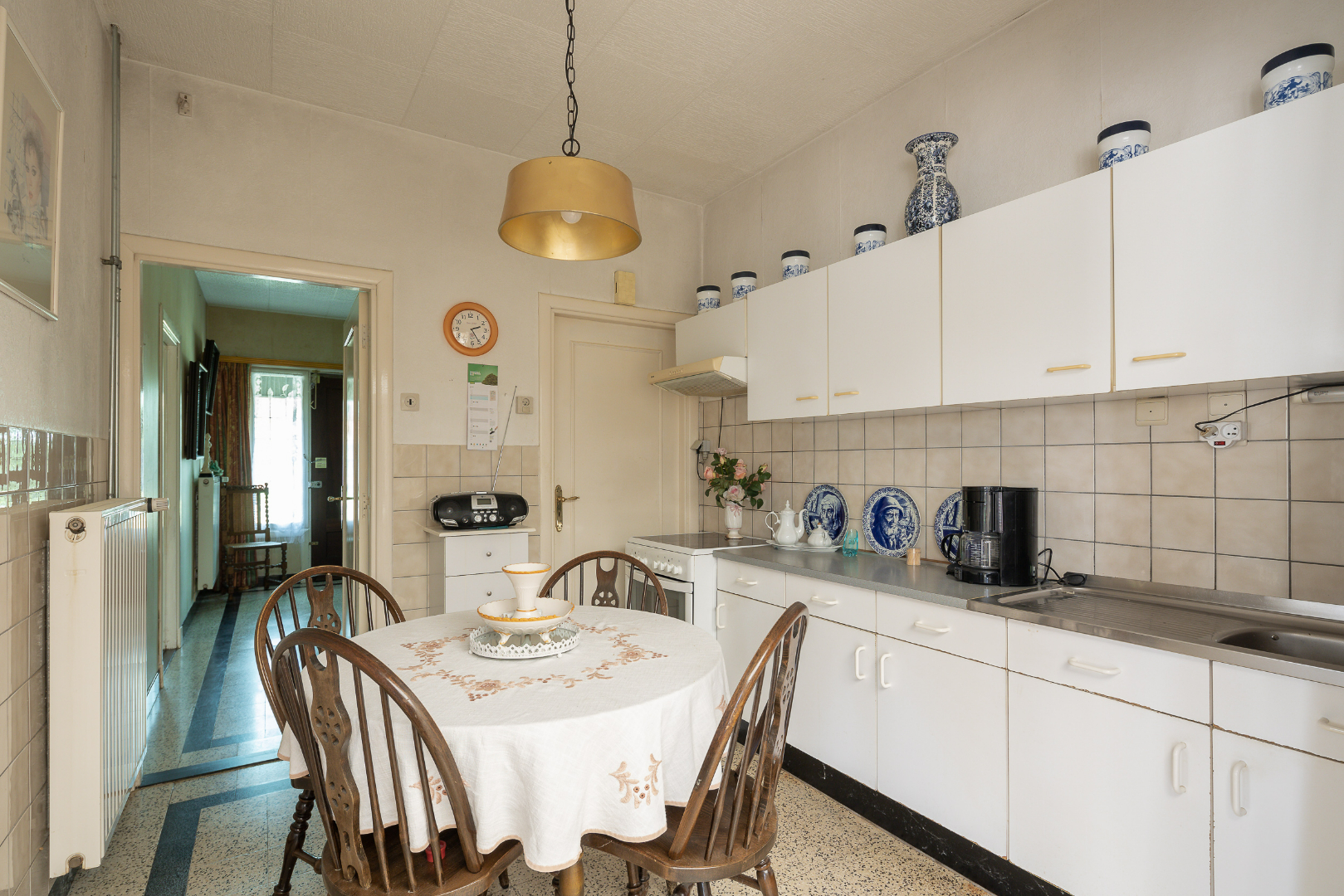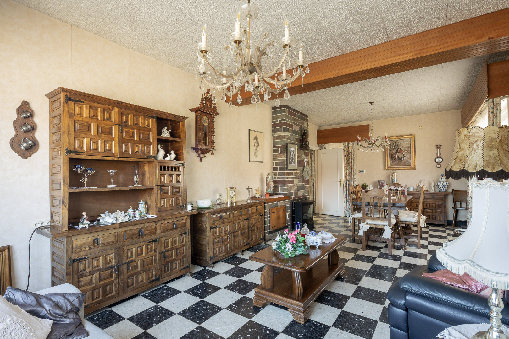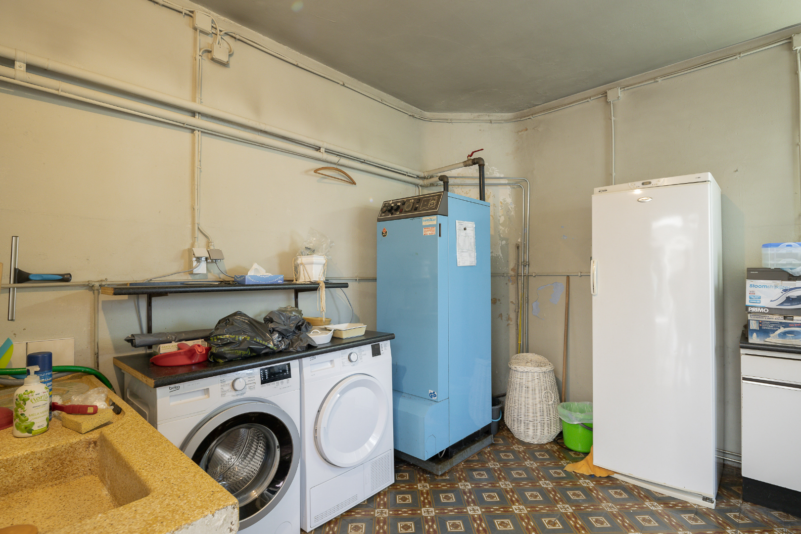 Gelijkvloers heeft de woning een ruime inkomhal, open leefruimte, keuken, toilet, berging en veranda. Verder is er ook nog een deel onderkelderd, beschikt de woning over meerdere garages, een carport alsook een leuk zitgedeelte. Als dit alles niet genoeg is, is er nog een heel groot stuk tuin dat zelf nog volledig ingericht kan worden.