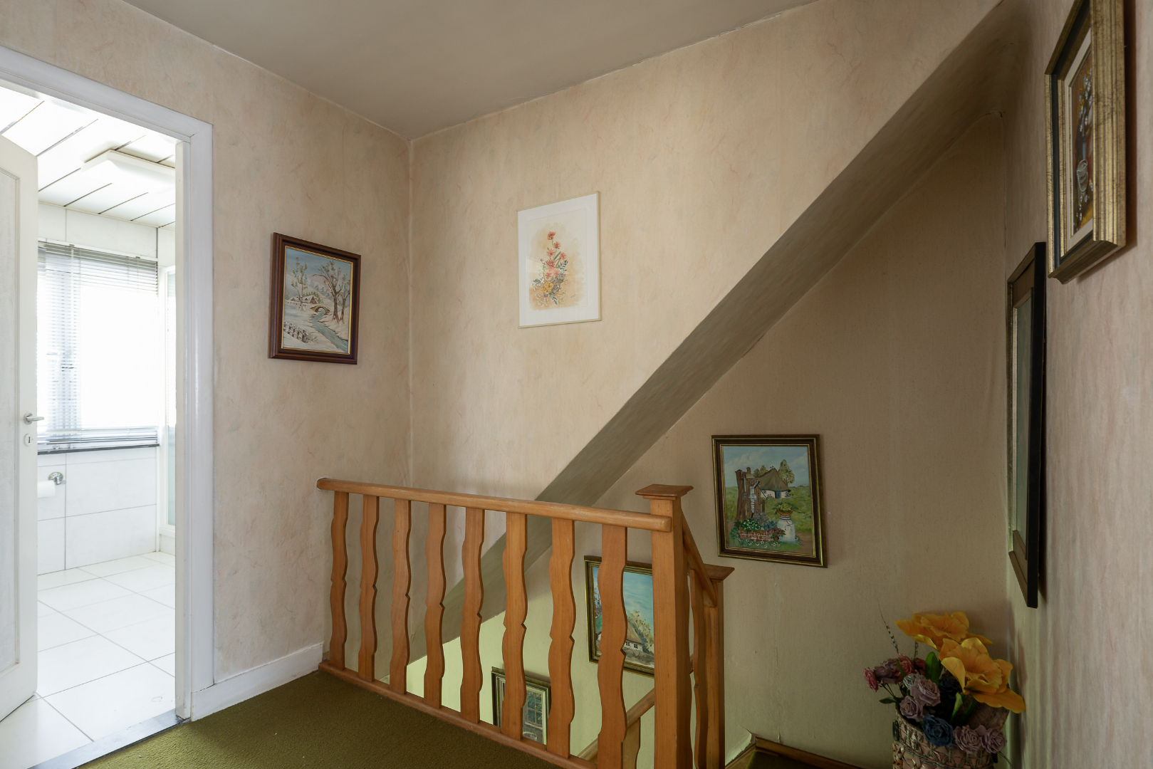 De woning heeft drie slaapkamers op verdiep, een badkamer die in de jaren 2000 werd vernieuwd met toilet, douchecabine, meubel en is volledig betegeld. Ook is er van hieruit een vaste trap naar de zolder die nog tal van mogelijkheden biedt.