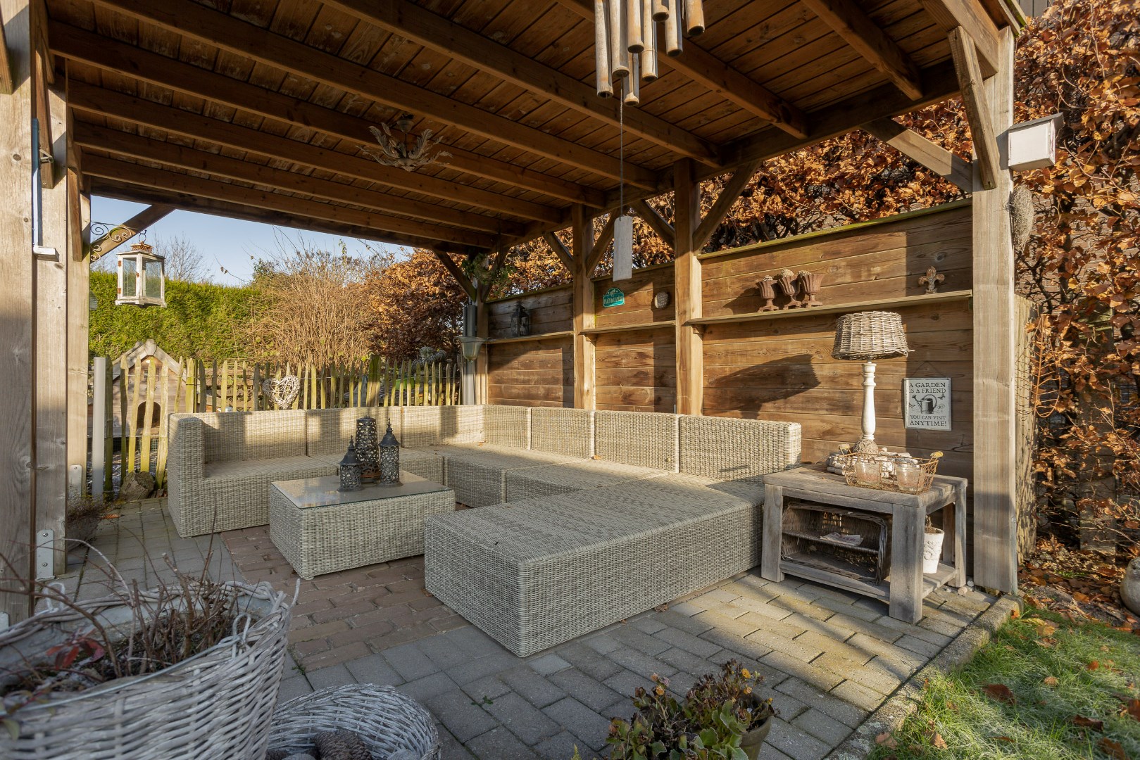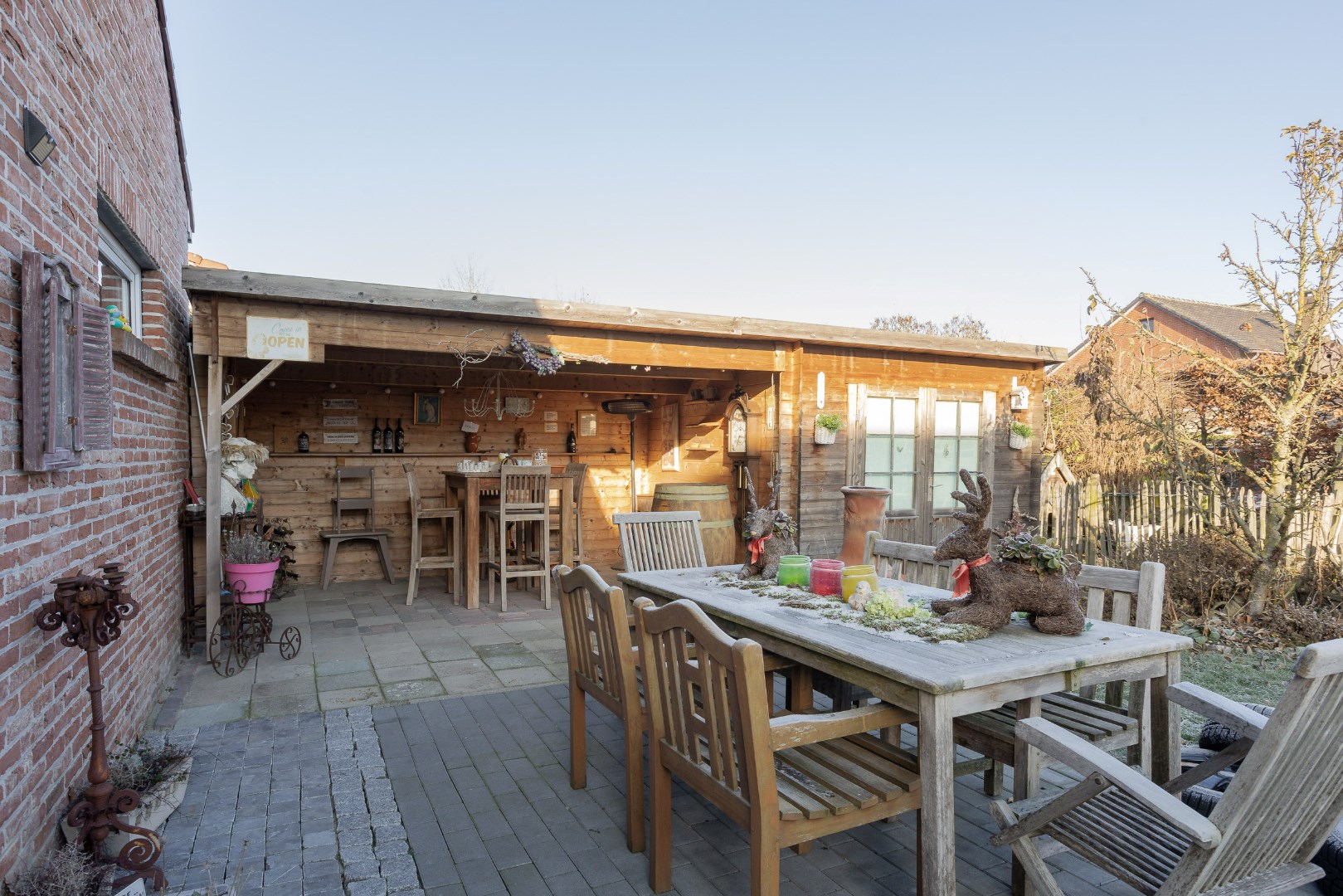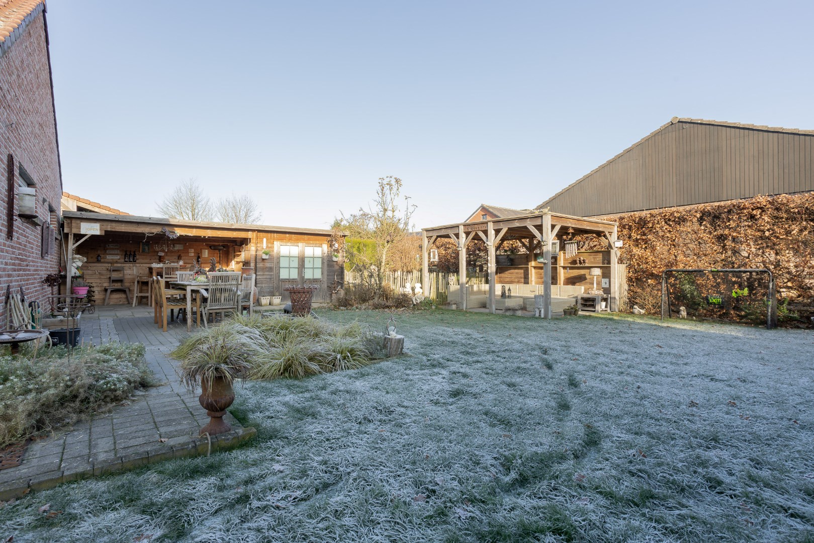De tuin is volledig omheind en netjes aangelegd. Er is een carport geplaats voor een camper. Daarnaast is er een terras aangelegd met overkapping, een tuinhuis met bar en een loungehoek. Zo kan u quasi in ieder plekje van de tuin rustig genieten van het perceel van 7a35ca.