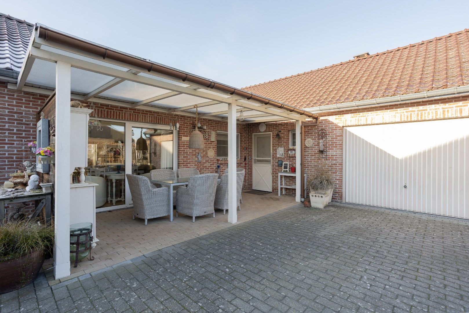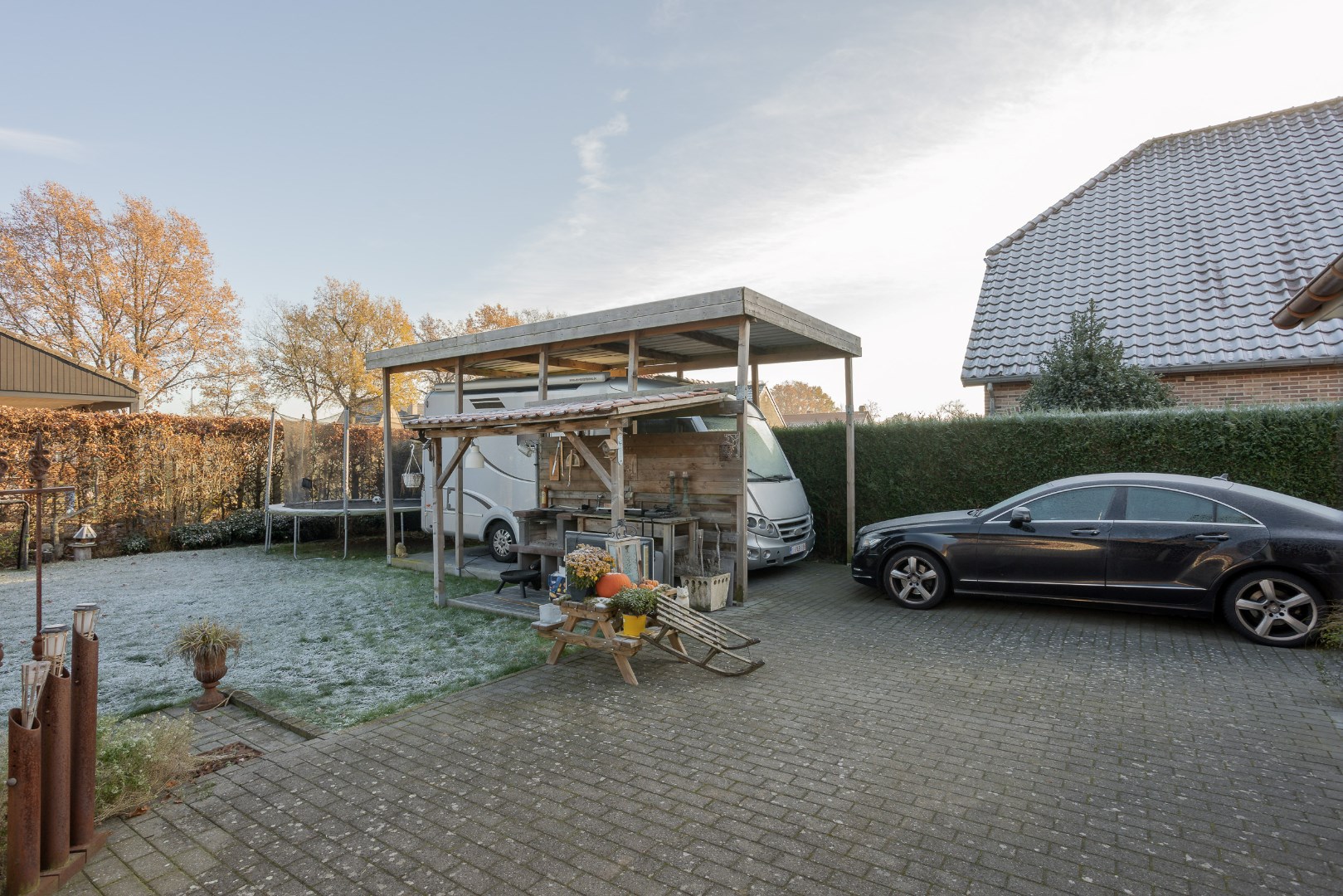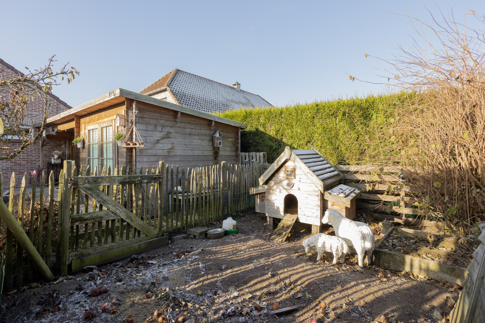 De tuin is volledig omheind en netjes aangelegd. Er is een carport geplaats voor een camper. Daarnaast is er een terras aangelegd met overkapping, een tuinhuis met bar en een loungehoek. Zo kan u quasi in ieder plekje van de tuin rustig genieten van het perceel van 7a35ca.