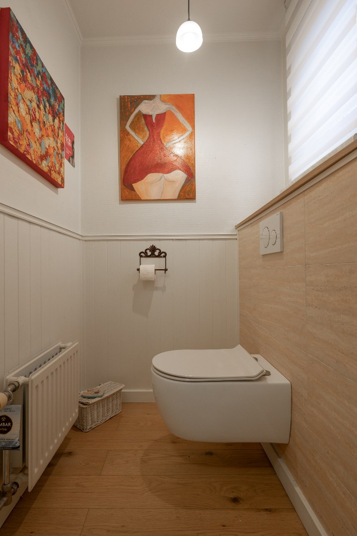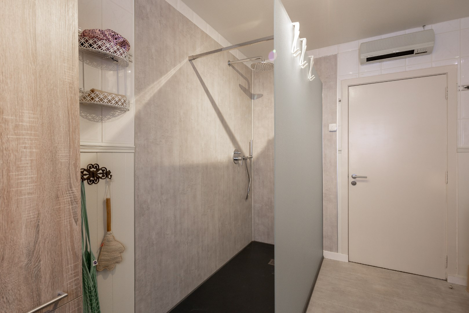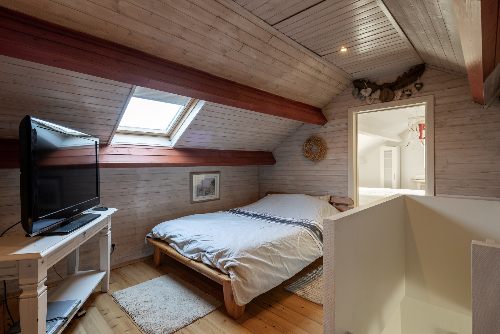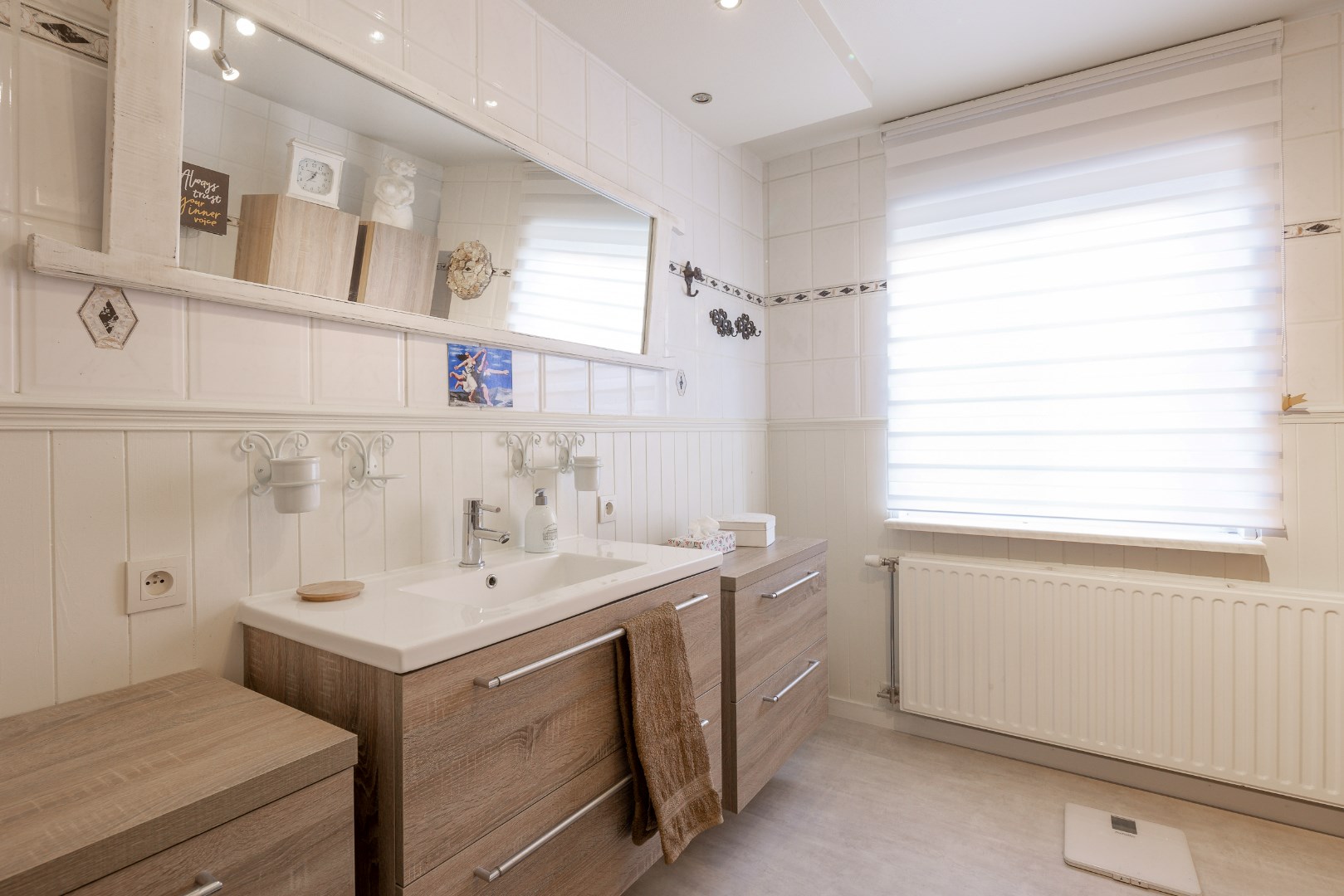 Verder is er een gerenoveerde badkamer met lavabo, veel kastruimte en een ruime inloopdouche. Ook zijn er drie slaapkamers voorzien van 12,5m², 9m² en 7,5m². Ook in deze kamers ligt er parket. Vervolgens is er nog een wasplaats, een aparte toilet en een ruime garage van 30m².