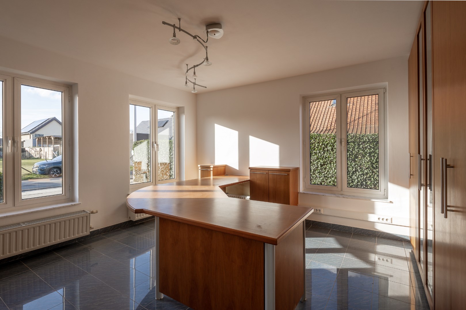 Goed gelegen gerenoveerde gezinswoning met vrij zicht op de velden op een perceel van +- 8 are kortbij het centrum van Neerpelt, scholen, ... Stroom conform. Asbestveilig. De woning bestaat uit een inkomhal voor, bureau/praktijkruimte, slaapkamer gelijkvloers, apart toilet, woonkamer, keuken centraal in de woning, berging, achterinkom, badkamer (inloopdouche, wastafel), technische ruimte. Trap naar boven, overloop, 3 ruime slaapkamers waarvan 1 slaapkamer nog een apart terras heeft met uitzicht op de velden. Badkamer (dubbele wastafel/bad). Berging. Volledig omheinde tuin. Dubbel garage met sectionale poorten. Kortom een instapklare woning die alle troeven in handen heeft voor rustig/aangenaam te kunnen wonen. Voor meer info contacteer ons op info@vastgoedfransen.be of 011/64 55 00.