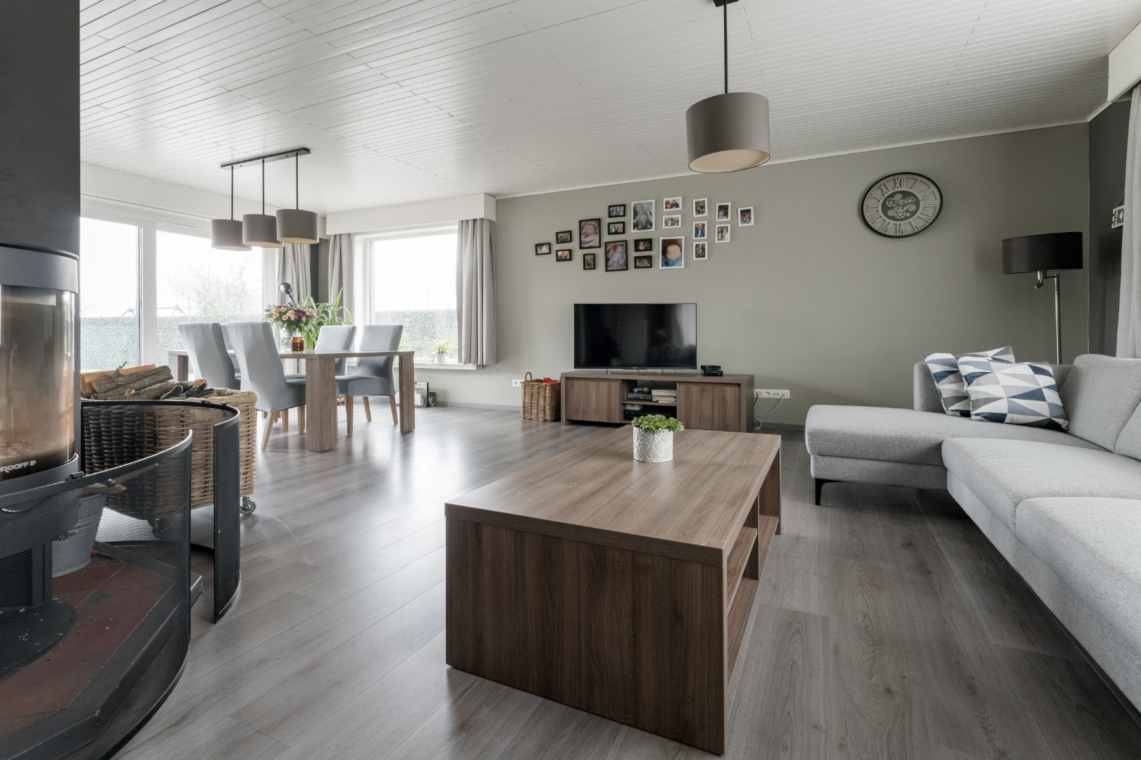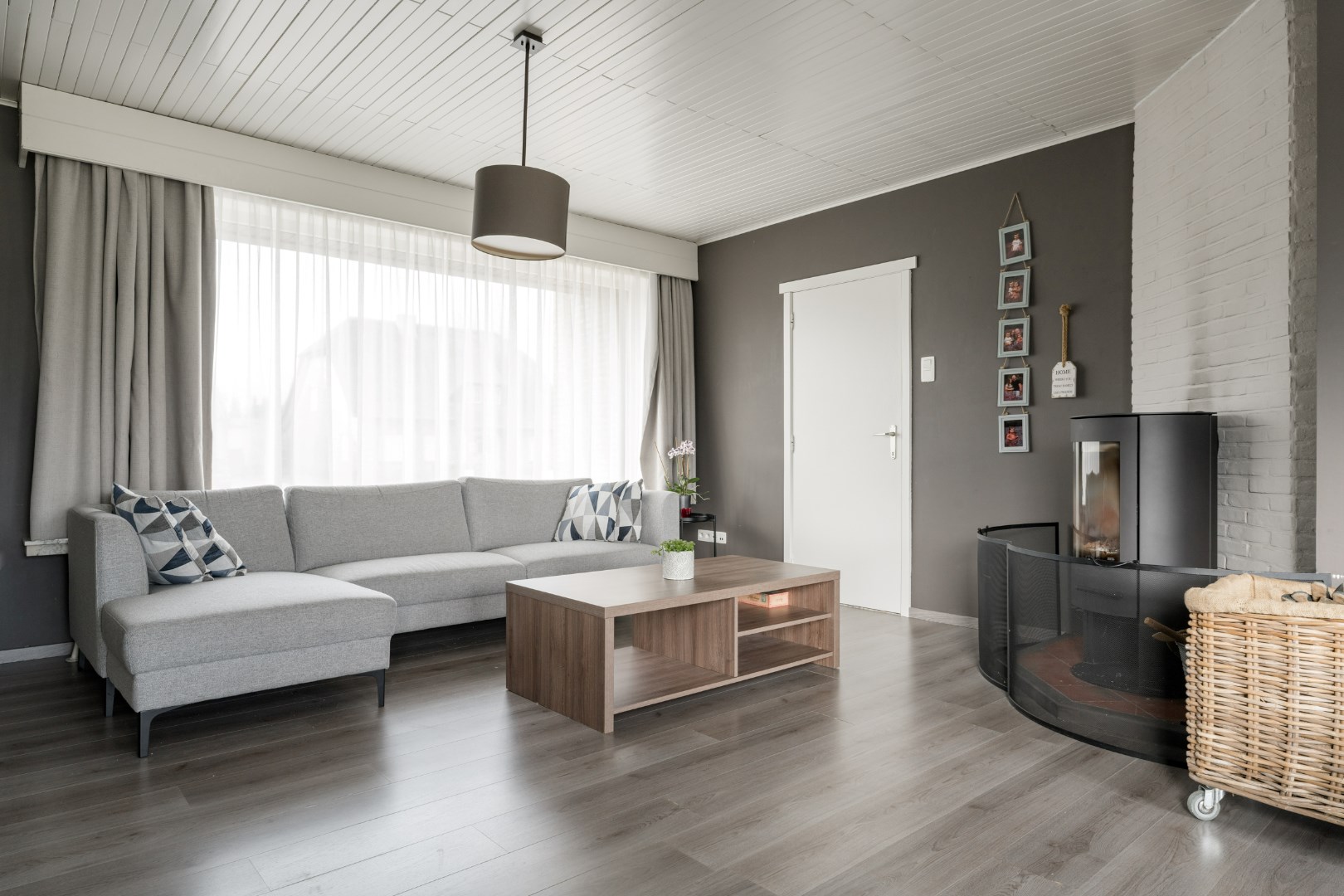 Eenmaal we de voordeur openen, komen we in de inkomhal terecht. Vanuit de inkomhal is er toegang naar de ruime leefruimte die een fantastische aansluiting heeft met de tuin met vrij zicht. In de leefruimte is een houtkachel geïnstalleerd voor de gezelligheid. Naast de leefruimte ligt de keuken die ook opnieuw aansluiting heeft met de tuin.