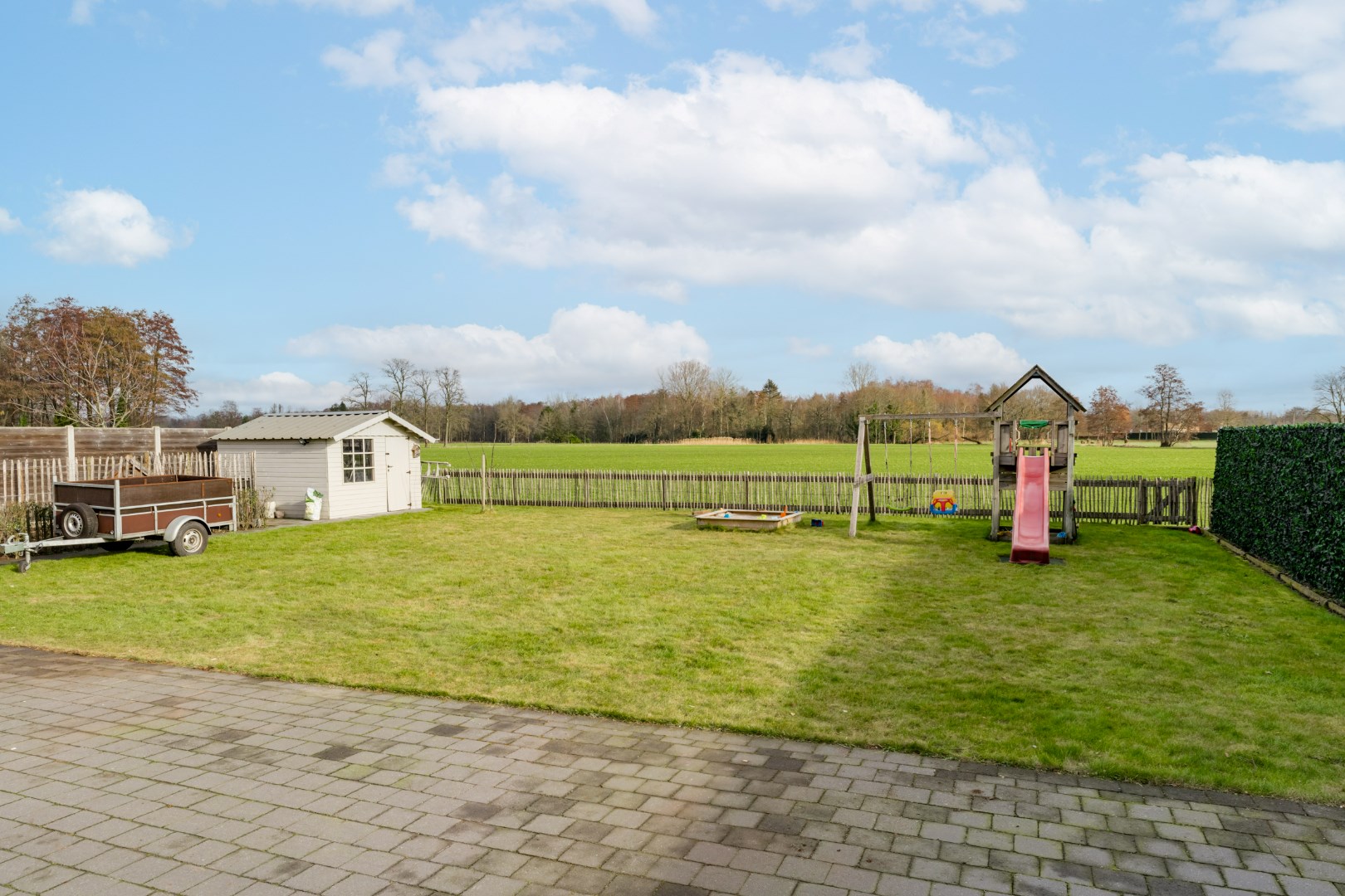 De tuin heeft een prachtige aansluiting met een enorm veld, waardoor je kan genieten van een fenomenaal zicht.