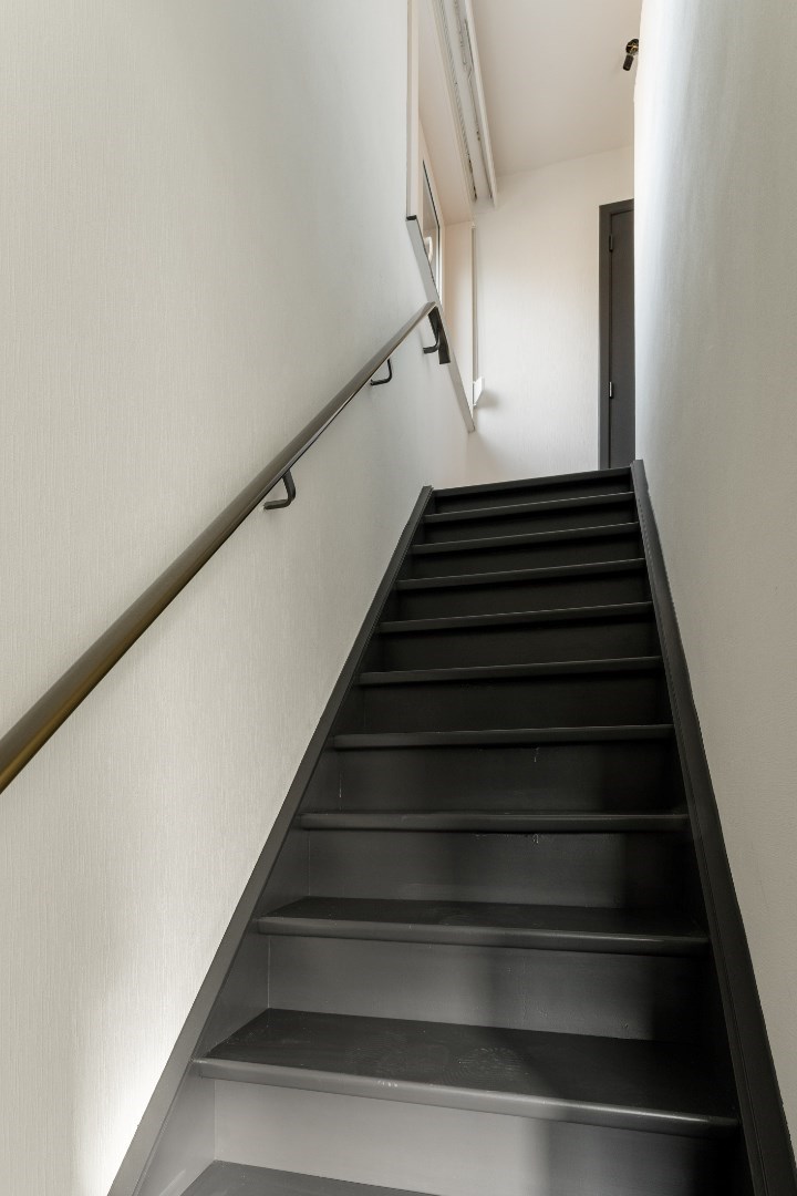 Als we via de trap naar naar boven gaan, komen we via de overloop in 3 slaapkamers en de badkamer. Ook is er toegang met een vlizotrap naar de ruime zolderruimte.
