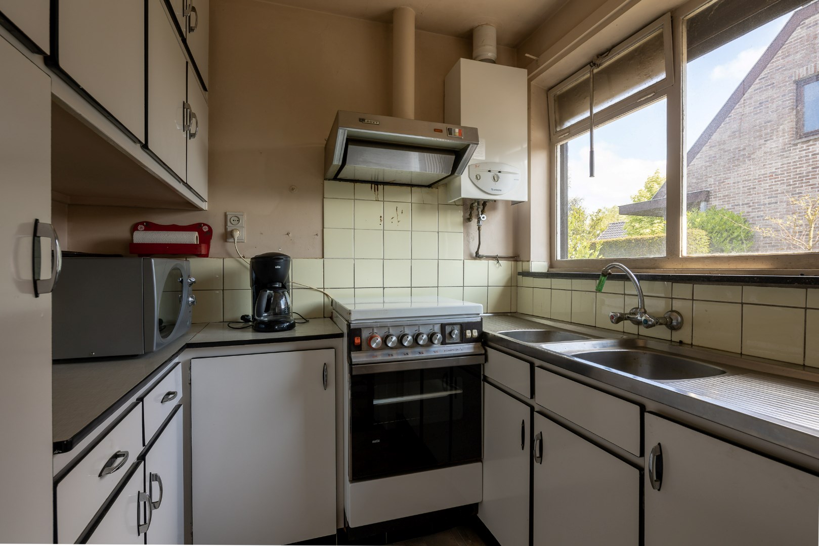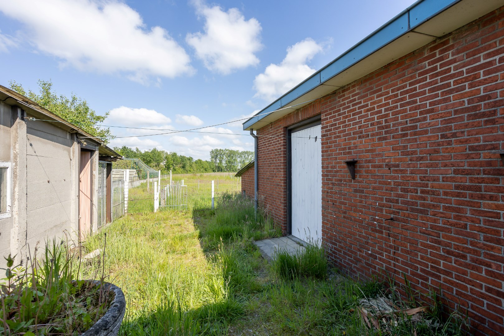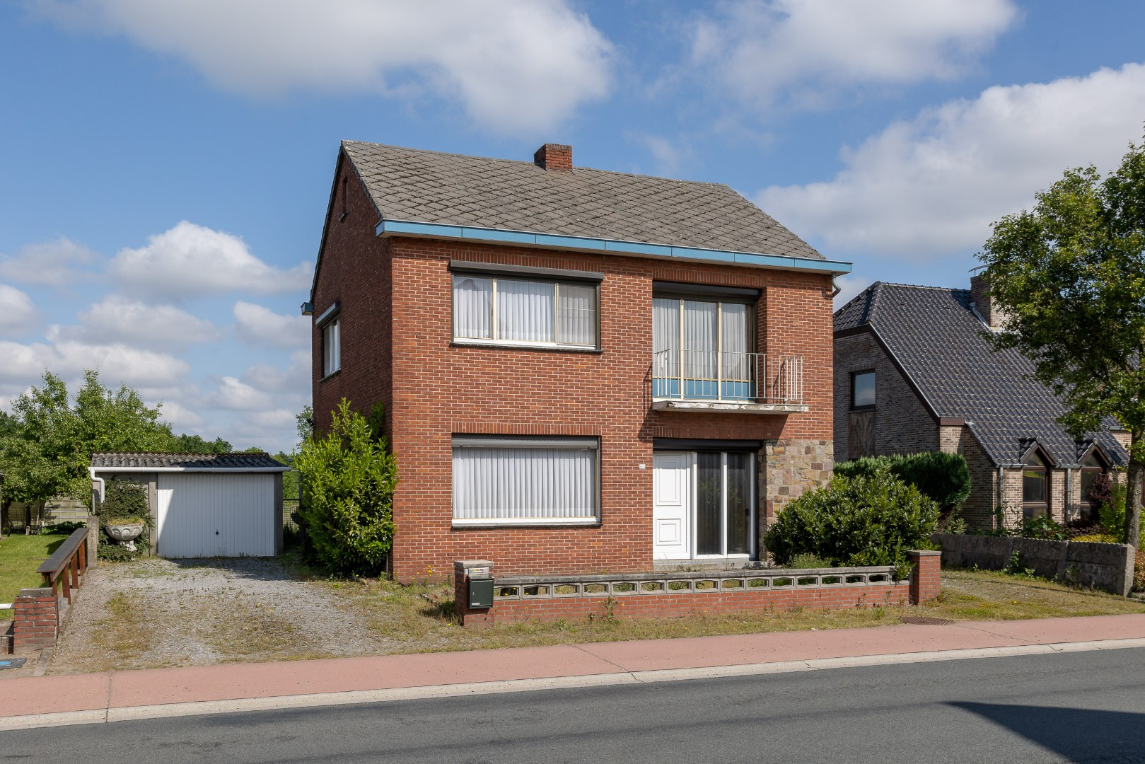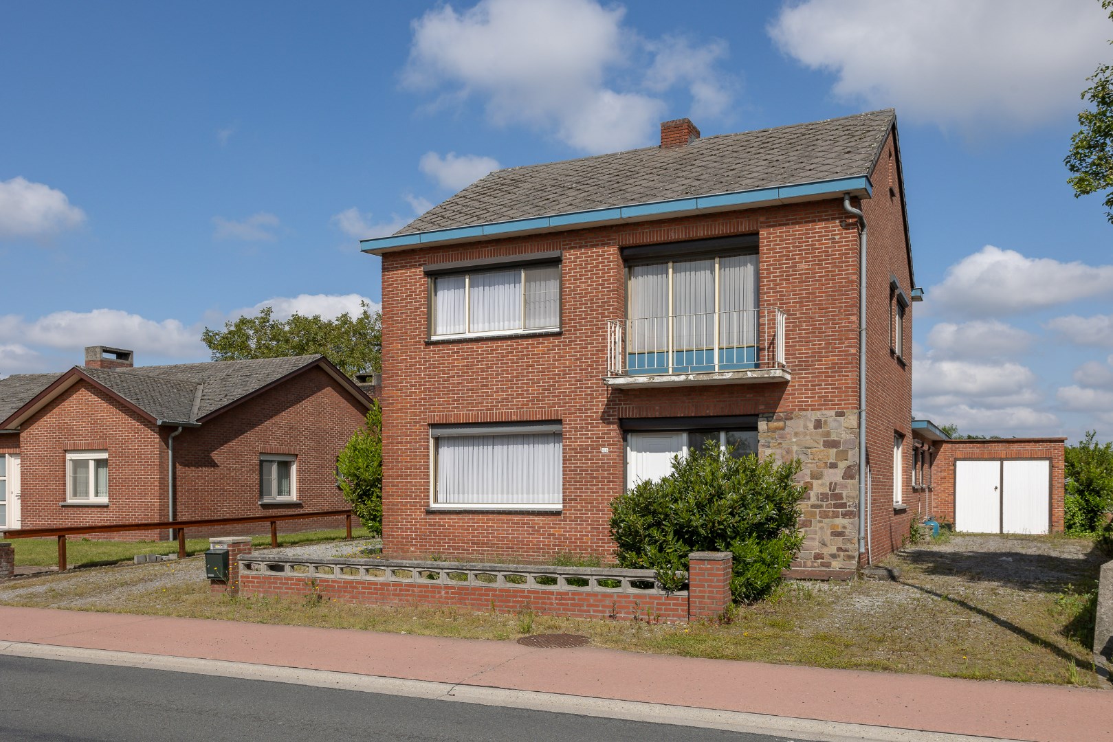 De woning beschikt over een garage tegen de woning alsook een losstaande garage. Verder is er nog een overkapping om buiten te zitten. Quasi overal zijn handmatige rolluiken voorzien en de ramen zijn ijzeren kozijnen met enkel glas. Er wordt gestookt op stookolie in de woning.