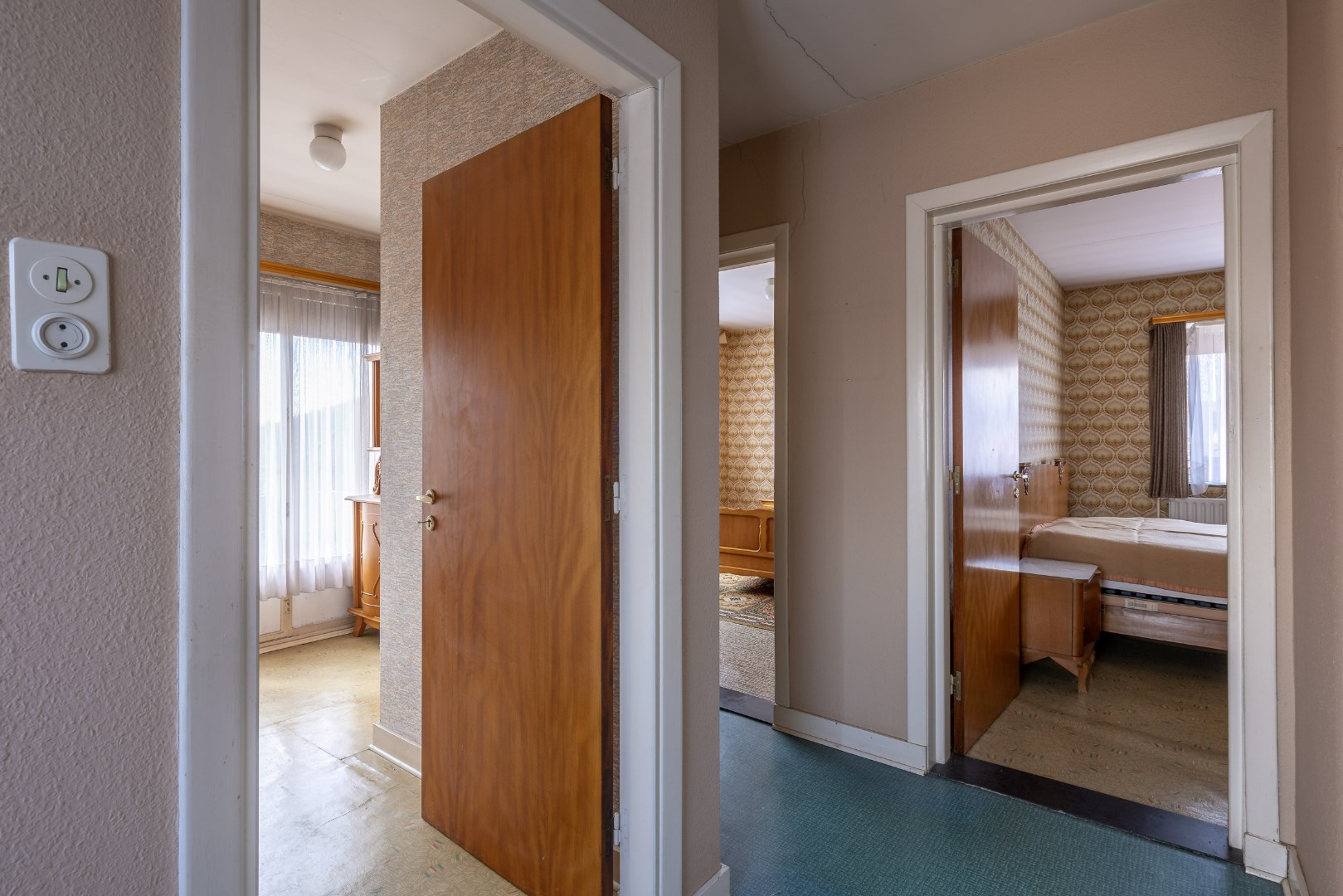 Op verdiep zijn er drie ruime slaapkamers en een kleinere kamer waarbij er toegang is tot de zolder met een vaste trap. Hier ligt vervolgens 8cm isolatie op het dek.