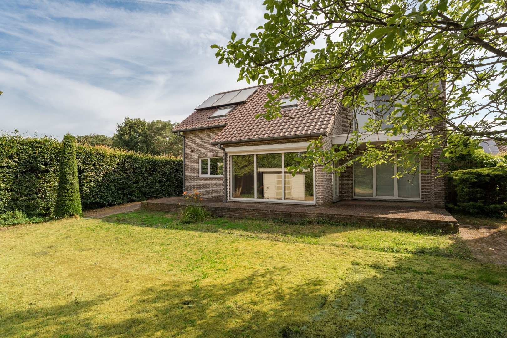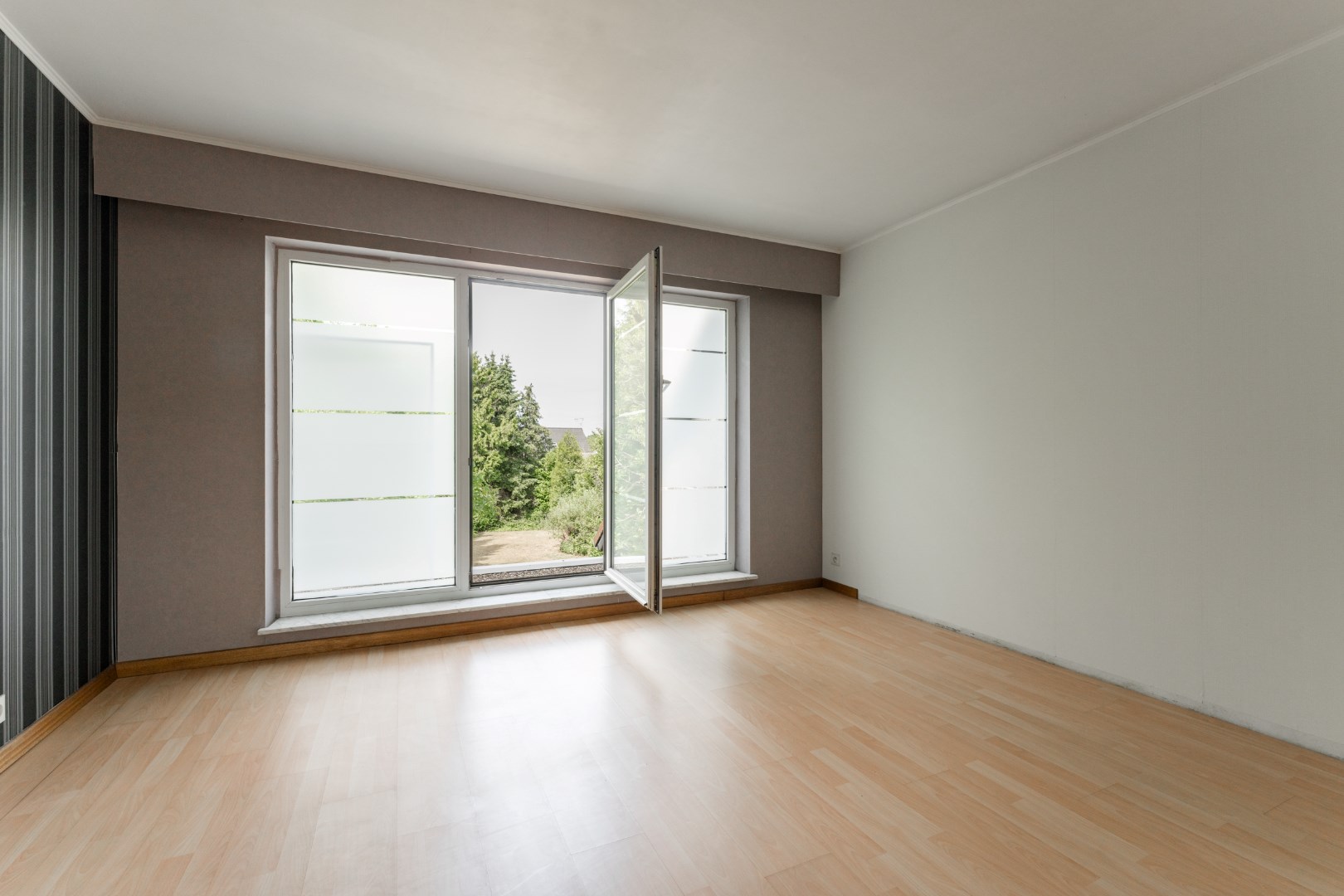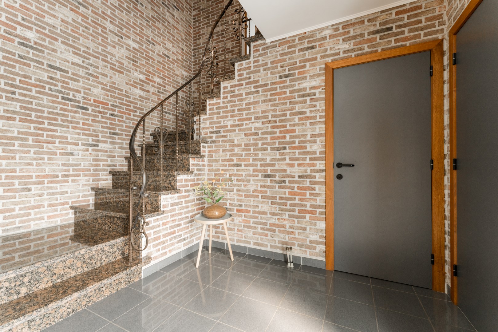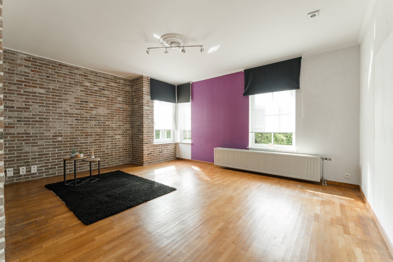 Eenmaal we de woning binnenkomen via de inkomhal, valt de smeedijzeren trapleuning en granieten trap direct op. Het is een ruime hal, die aansluiting geeft naar het toilet, de dubbele inpandige garage, de leefruimte alsook het verdiep via de trap. Wanneer we in de leefruimte stappen, voelen we direct de lichtinval en aangename aansluiting met de tuin. De zit- en eethoek bevinden zich in een open ruimte en sluiten aan op het deels overdekte terras. Hier is een mooie parket voorzien. Naast deze ruimte vindt u de keuken terug, die in 2013 werd vernieuwd en zo goed als nieuw is. De keuken is voorzien van Bosch-toestellen zoals een inductievuur, vaatwasser, spoelbak, oven, koelkast en voldoende bergruimte.