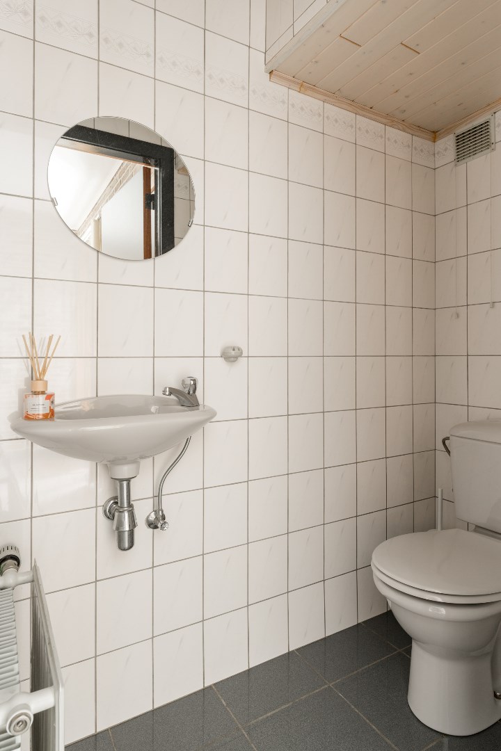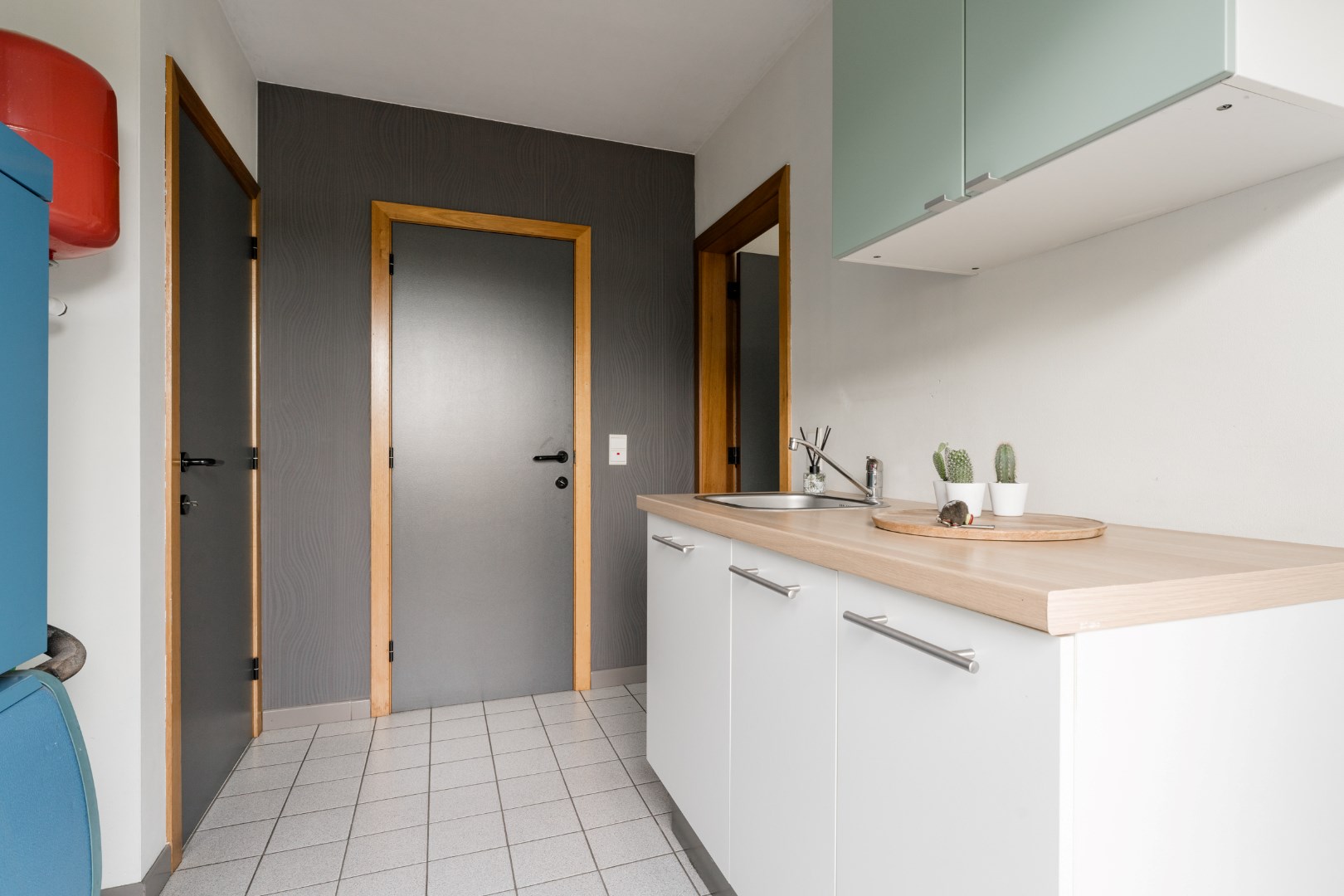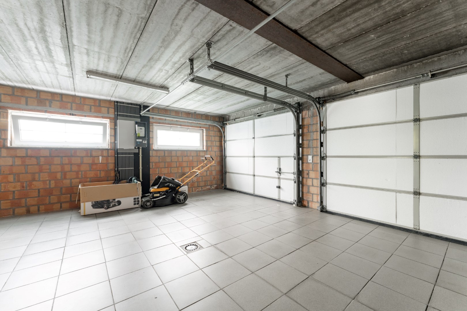 Vervolgens is er gelijkvloers nog een bergruimte, apart toilet, zeer ruime garage van 33m² en kelderruimte van 14m².