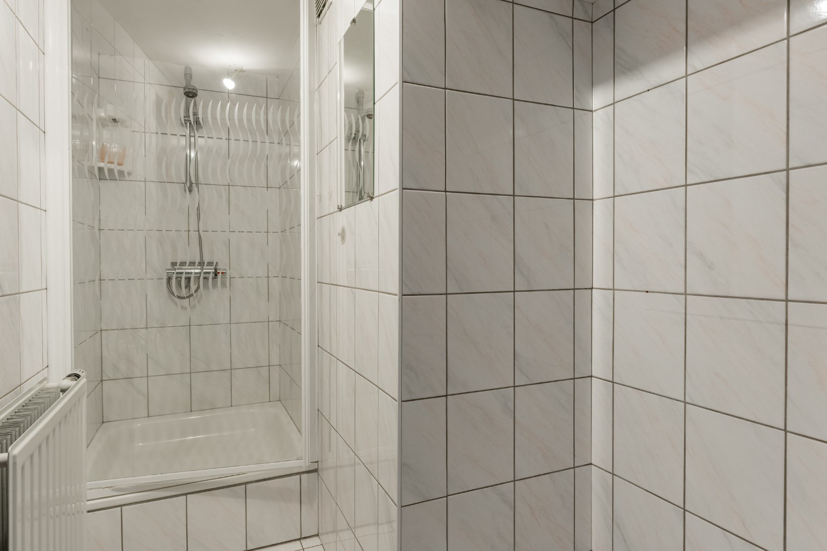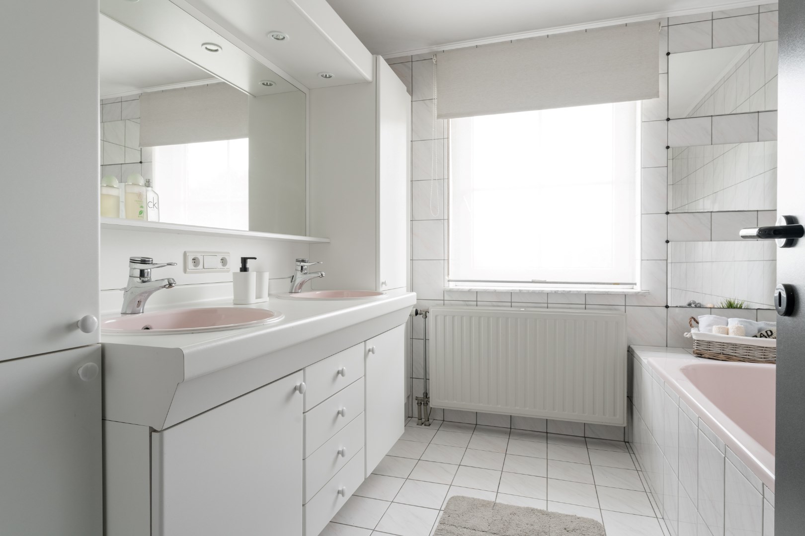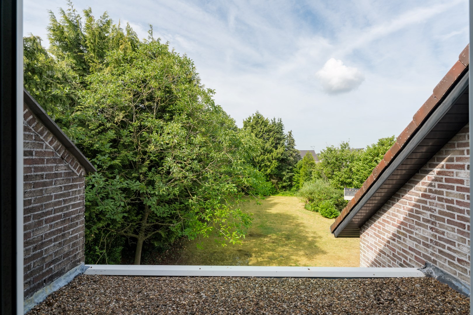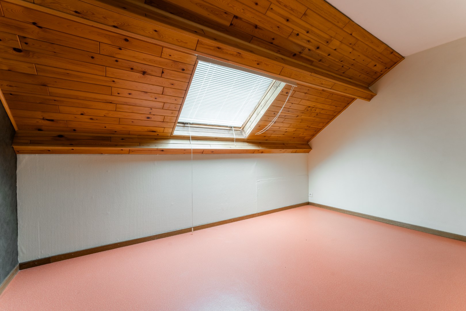 Eenmaal we op het verdiep komen, is er een ruime overloop, zijn er drie slaapkamers (10m²-20m²) waarvan eentje met mogelijkheid tot dakterras en een fantastisch zicht over de tuin, badkamer met bad en dubbele lavabo, aparte doucheruimte, apart toilet en opbergruimte. Verder is hier ook een zonneboiler van 300 liter die gekoppeld is aan 3 panelen die op het dak liggen.