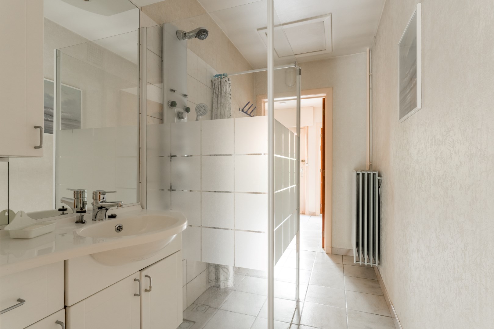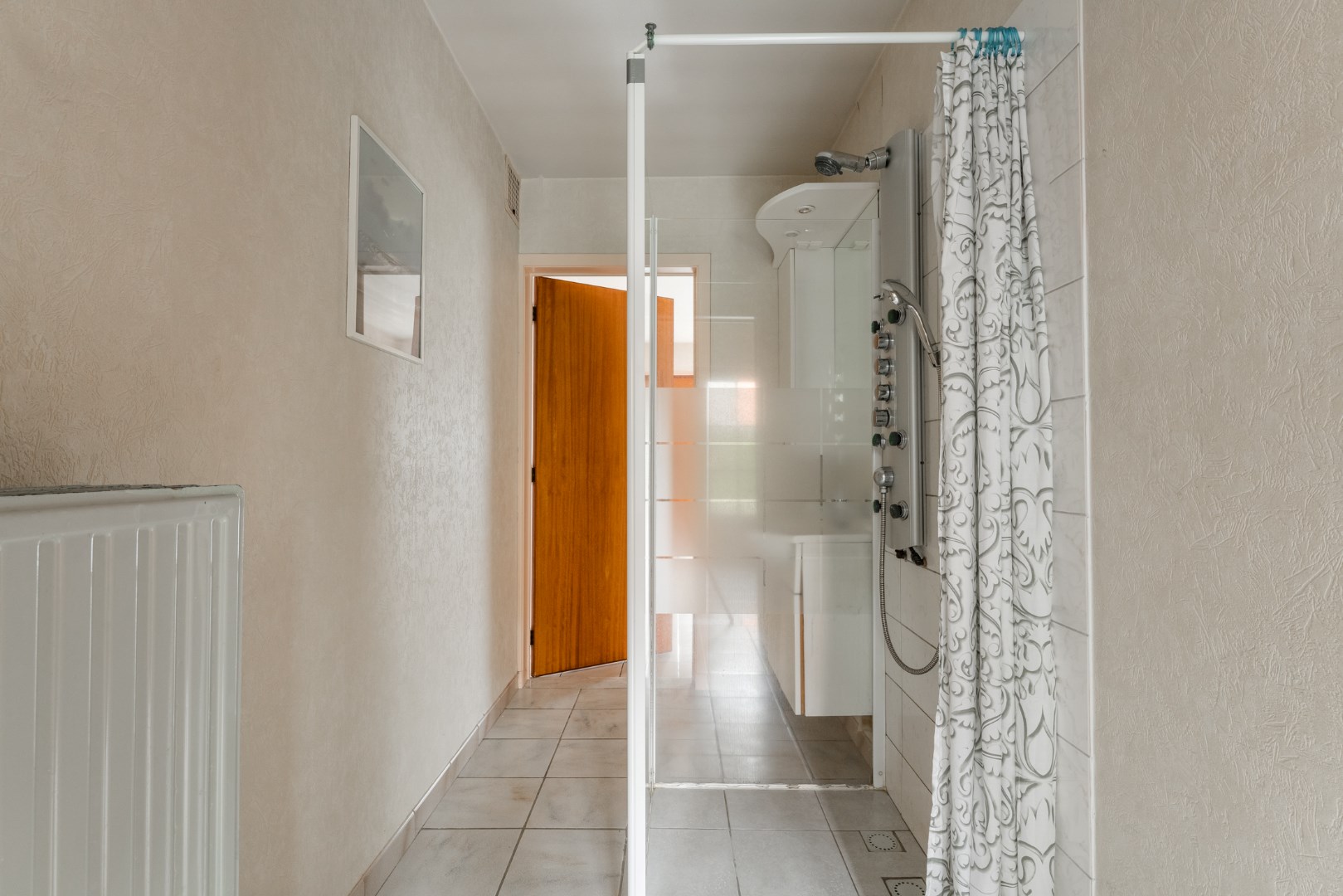 Als we de woning betreden, komen we terecht in een zeer ruime inkomhal. Deze geeft toegang tot de leefruimte met een zit- en eethoek. Deze ruimte grenst praktisch aan de keuken die voorzien is van een dubbele spoelbak, gasvuur, oven en koelkast. Verder vinden we nog drie slaapkamers terug met een prima formaat, een ruime berging en een badkamer met douche. Vervolgens is er nog een zeer grote bergruimte die voor diverse doeleinden gebruikt kan worden.