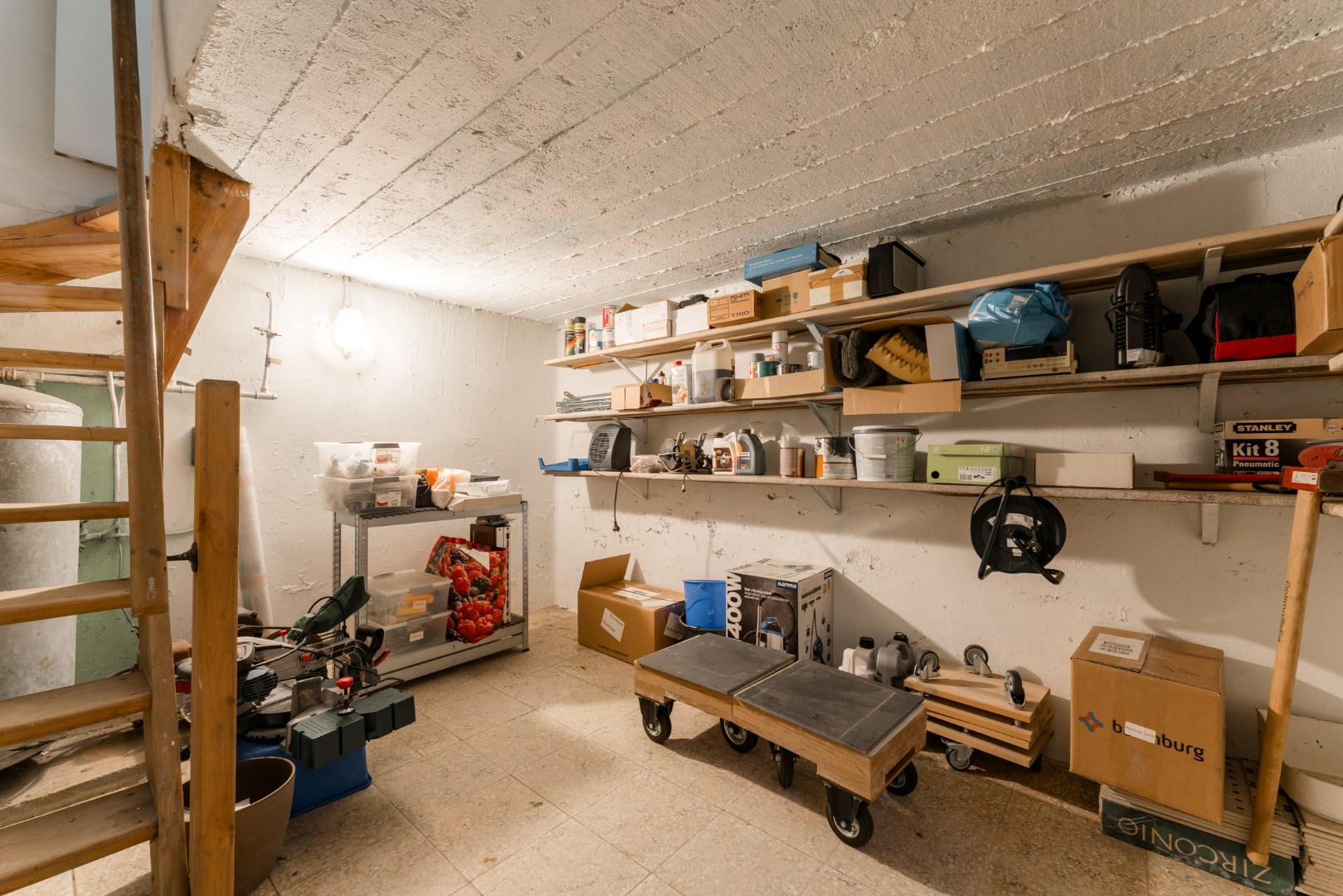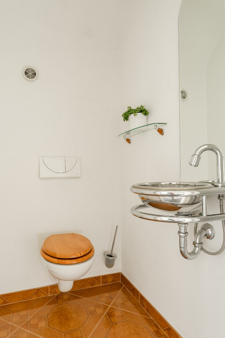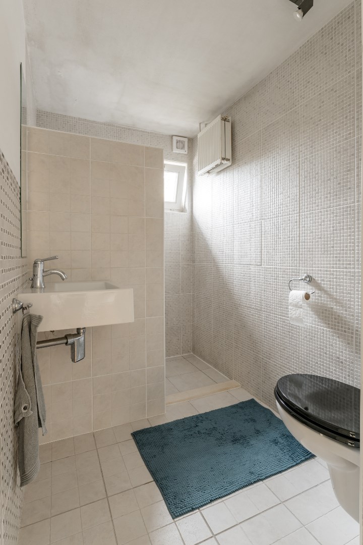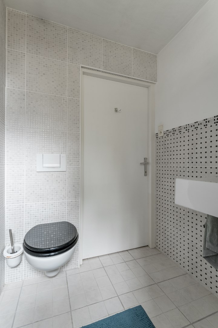 Verder vinden we beneden nog een badkamer, een toilet, polyvalente ruimte (slaapkamer - bureau) en een opbergkelder vlakbij de keuken.