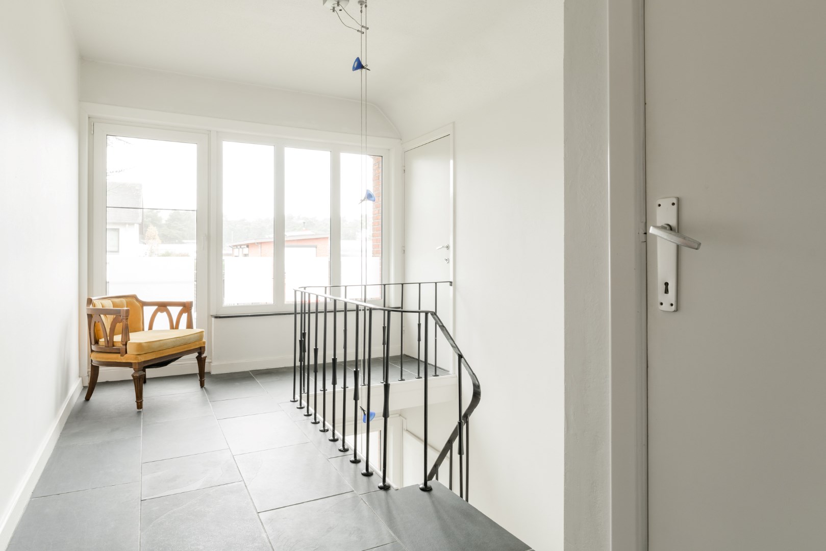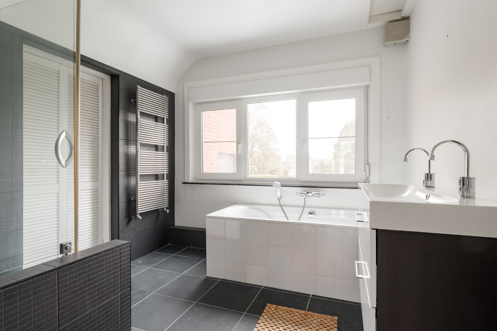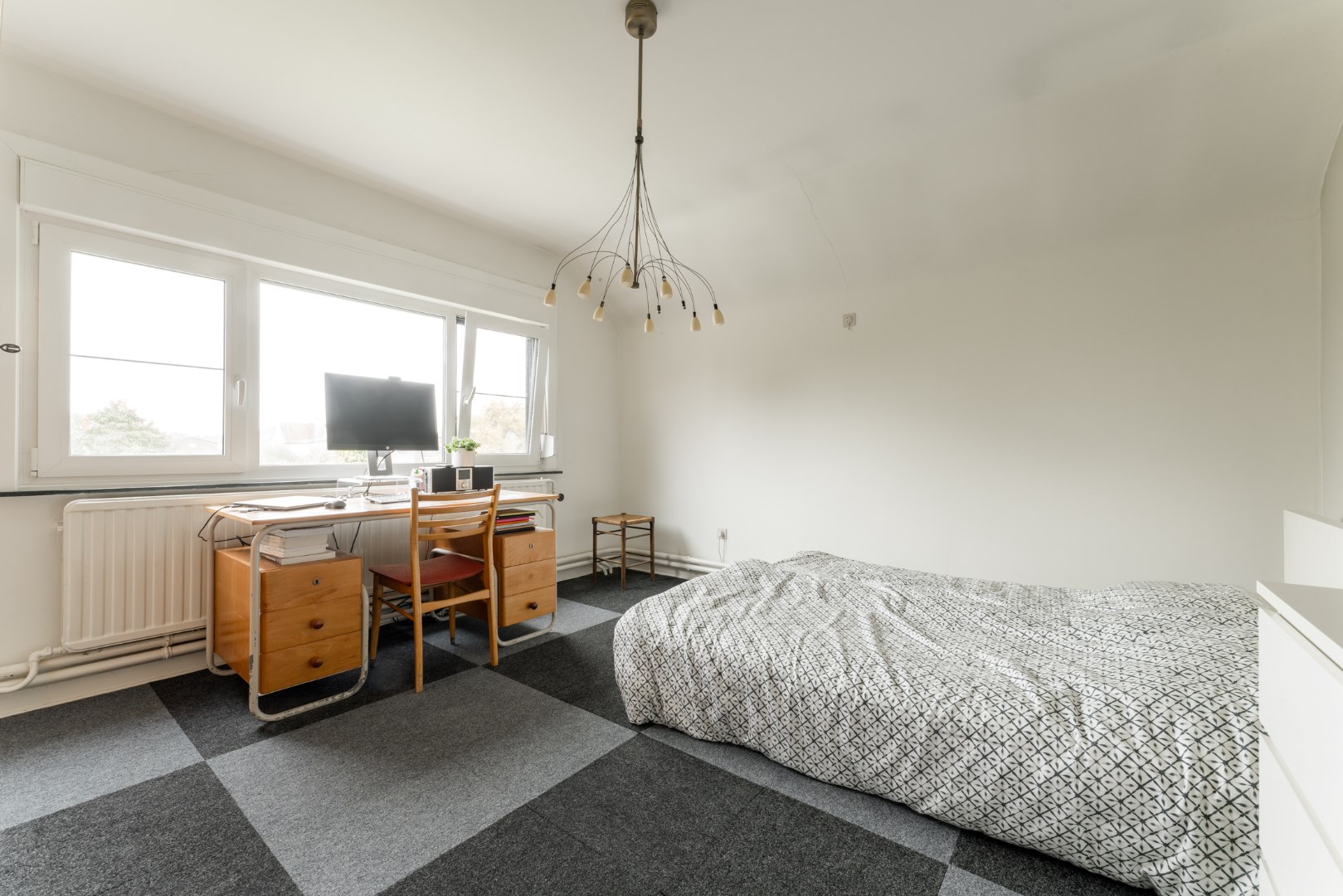 Verder vinden we beneden nog een badkamer, een toilet, polyvalente ruimte (slaapkamer - bureau) en een opbergkelder vlakbij de keuken.