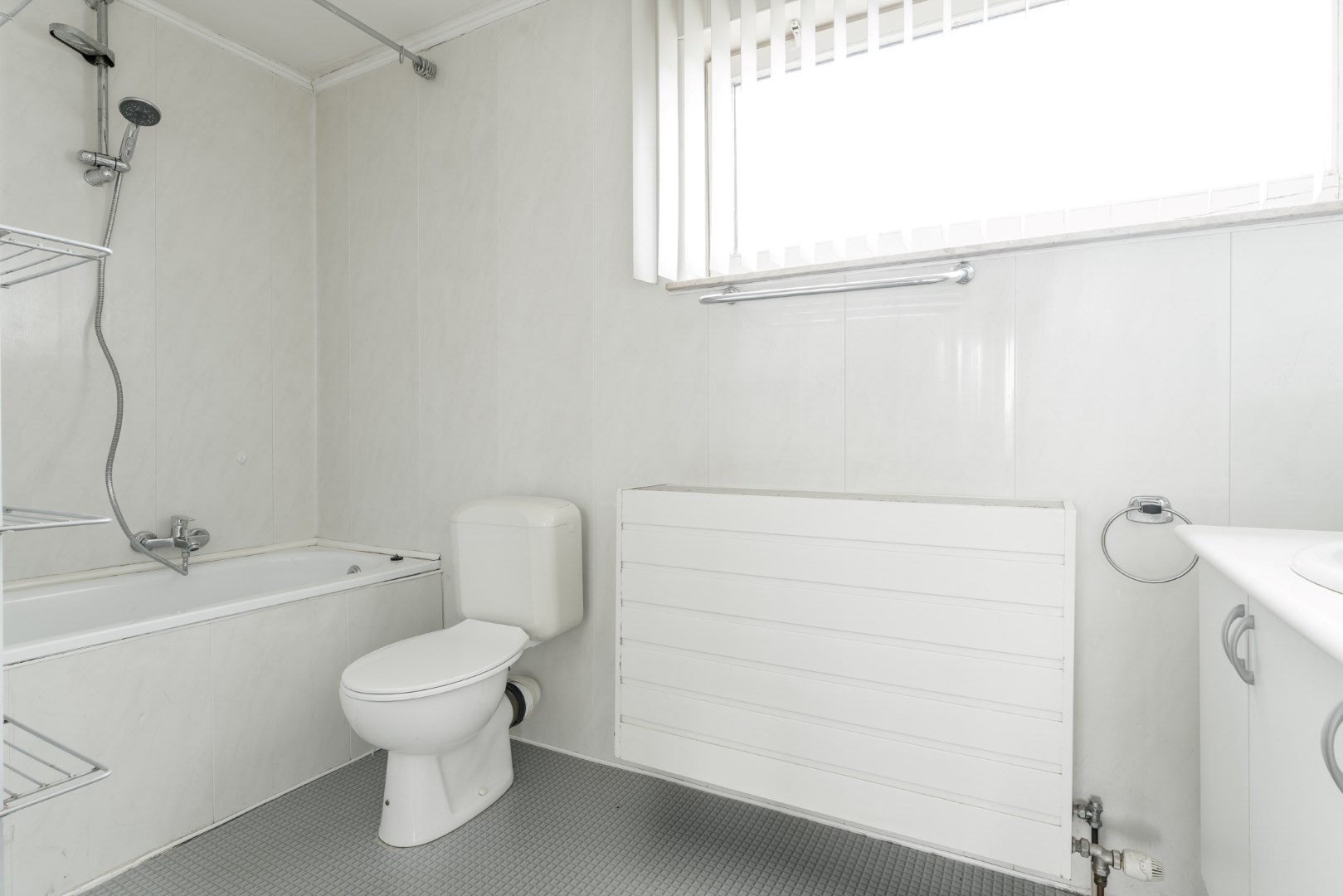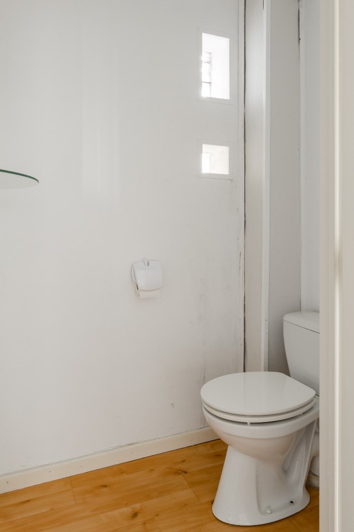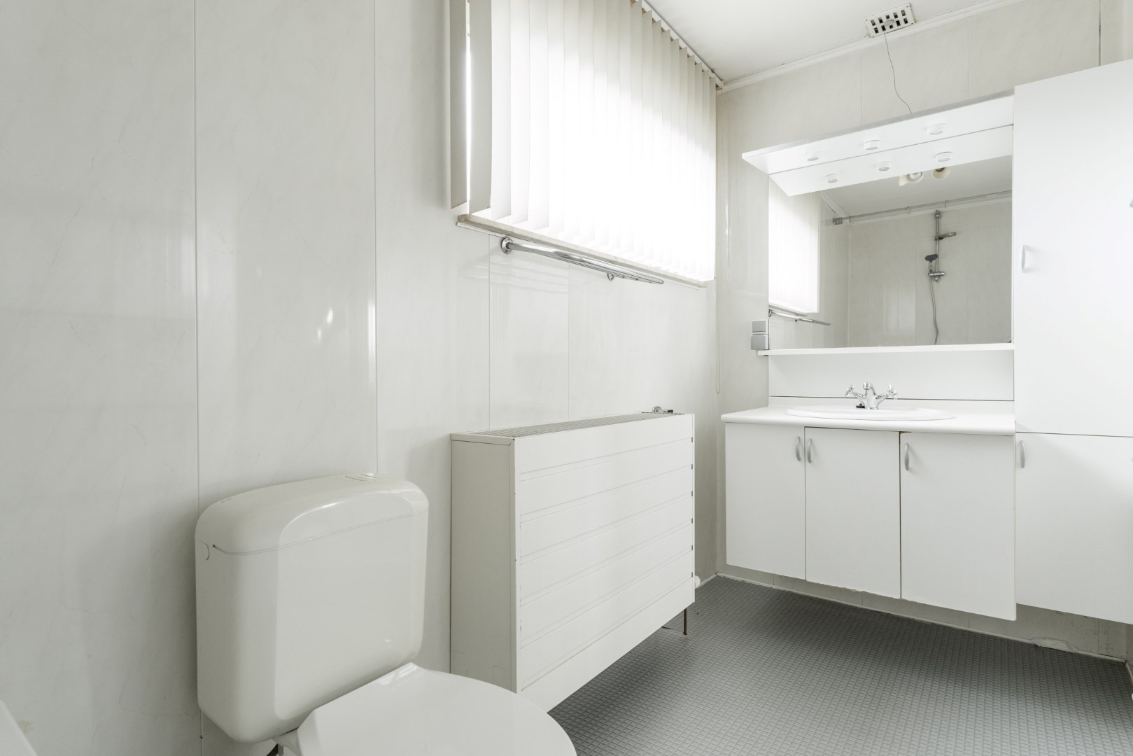 Als we naar het verdiep gaan, vinden we drie slaapkamers en een badkamer. We merken direct dat de vloeren hier werden vernieuwd en het verdiep quasi instapklaar is. De badkamer beschikt over een bad-douchecombinatie, een meubel en toilet. Deze werd volledig betegeld.