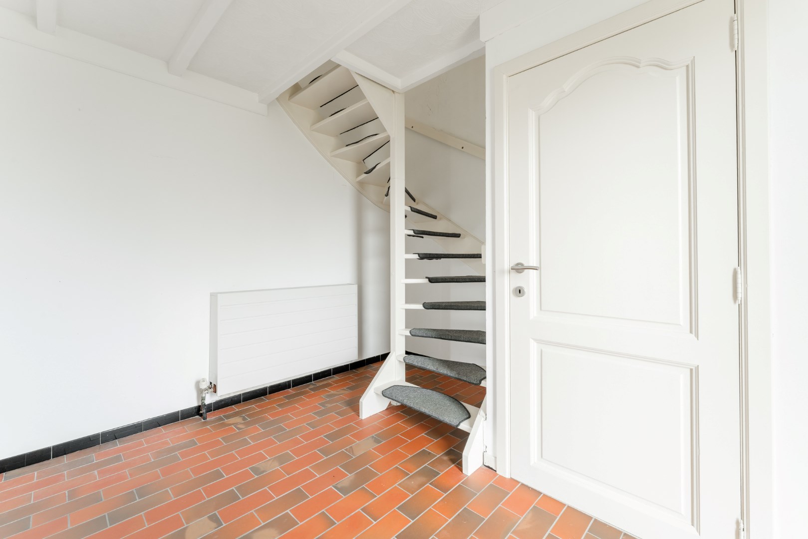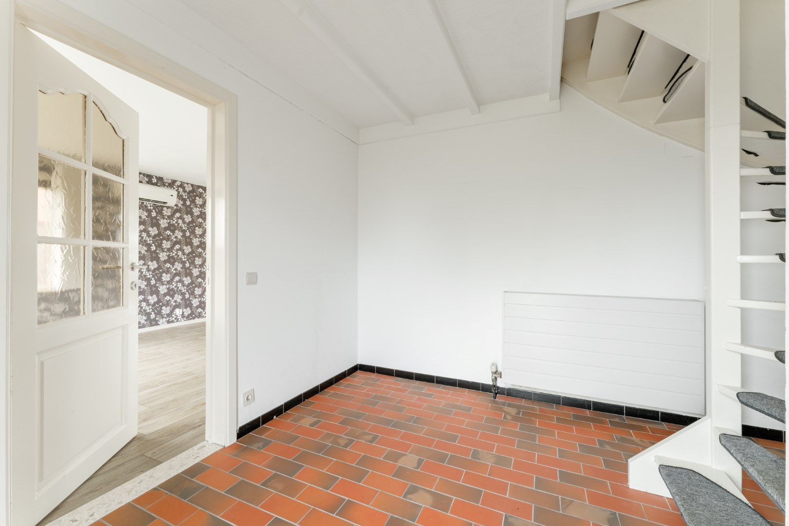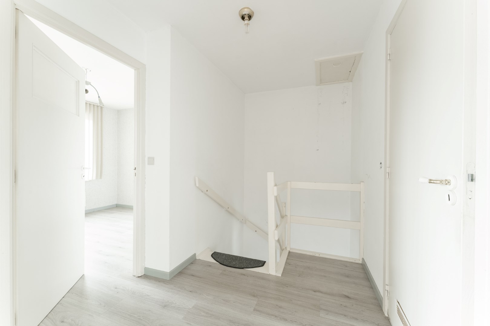 Via de inkomhal is er toegang tot een ruime living, een apart toilet en de trap om naar het verdiep.