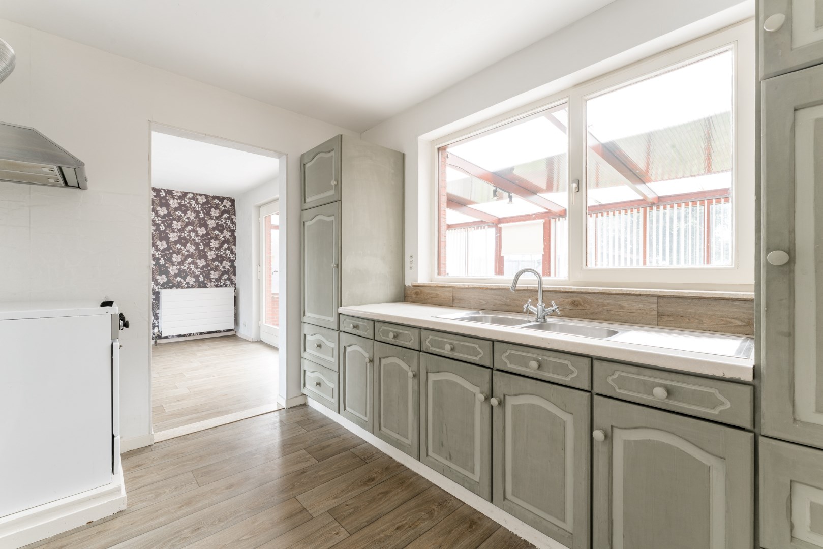 Gelijkvloers merken we dat we vanuit de living naar de keuken kunnen, alsook naar de mooie veranda. Deze is zeer ruim (23m² groot) en een aangenaam verlengde van de leefruimte. Vanuit de keuken is er vervolgens nog de doorgang naar de garage en wasplaats (27m² groot).