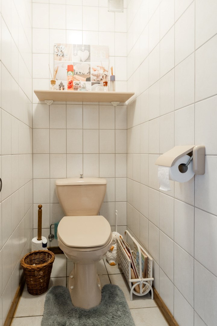 Vervolgens kunnen we vanuit de nachthal naar de twee slaapkamers, waarbij de master bedroom voorzien is van inbouwkasten. Verder vinden we nog een apart toilet en een badkamer met bad.