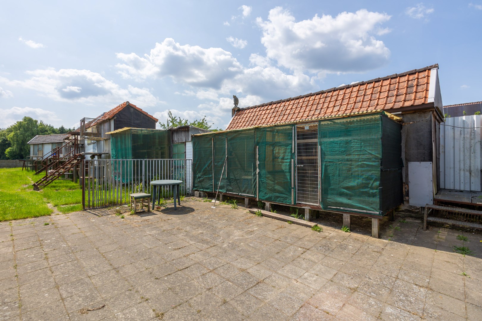 Op het perceel staat er naast het huis nog een garage en grote berging, nog een extra vrijstaande garage, alsook een volledig ingerichte duiventil.