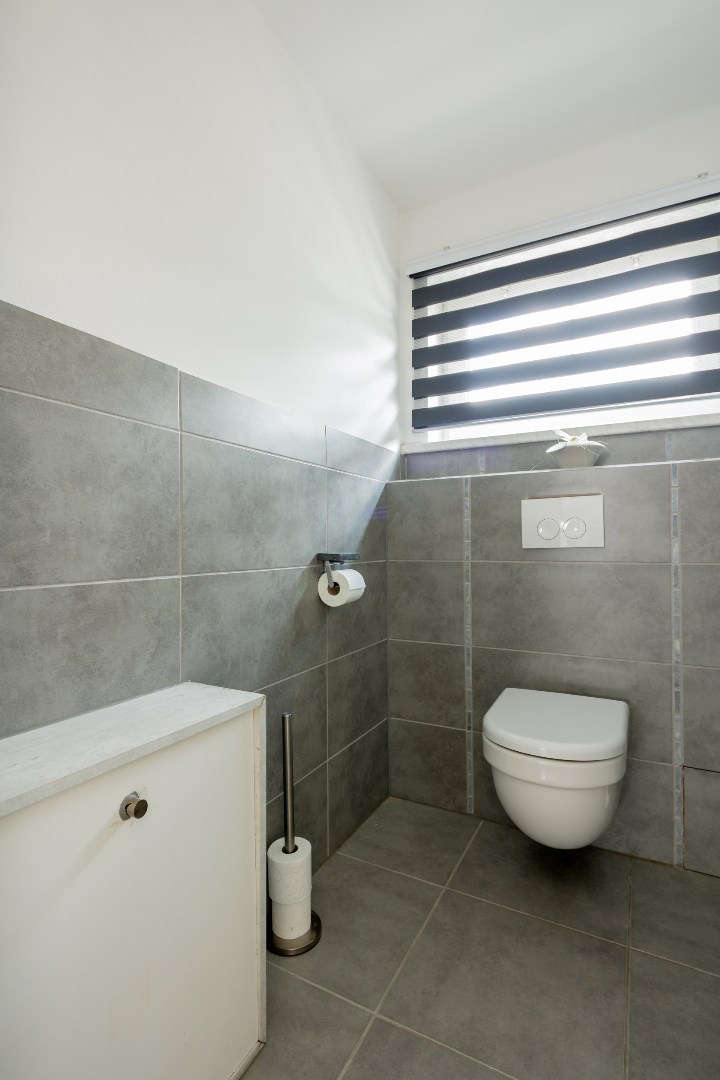 Op verdiep vinden we vervolgens drie slaapkamers terug, allemaal voorzien van laminaat. Ook deze kamers zijn netjes afgewerkt. Verder is er nog een apart toilet en een zeer ruime badkamer met inloopdouche, bad en dubbele lavabo.