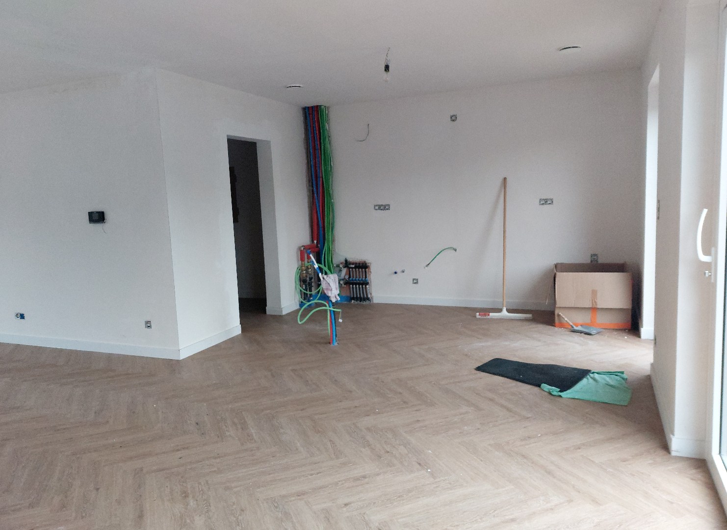 We merken direct dat de woning voorzien is van een mooie visgraatvloer en er veel lichtinval binnenkomt. De leefruimte is ruim opgezet en is één open ruimte met de keuken. Er is gekozen om geen keuken te plaatsen, zodanig dat u als koper nog volledig naar eigen smaak een keuken kan kopen en installeren.