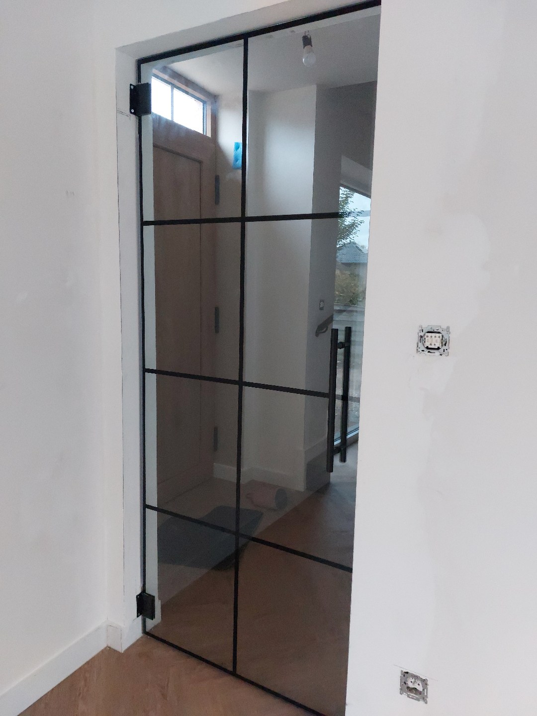 Eenmaal de woning binnenkomen, hebben we een aangename inkomhal die toegang geeft tot het verdiep, het aparte toilet (betegeld) en de open leefruimte. De open leefruimte is toegankelijk via een mooie glazen deur.