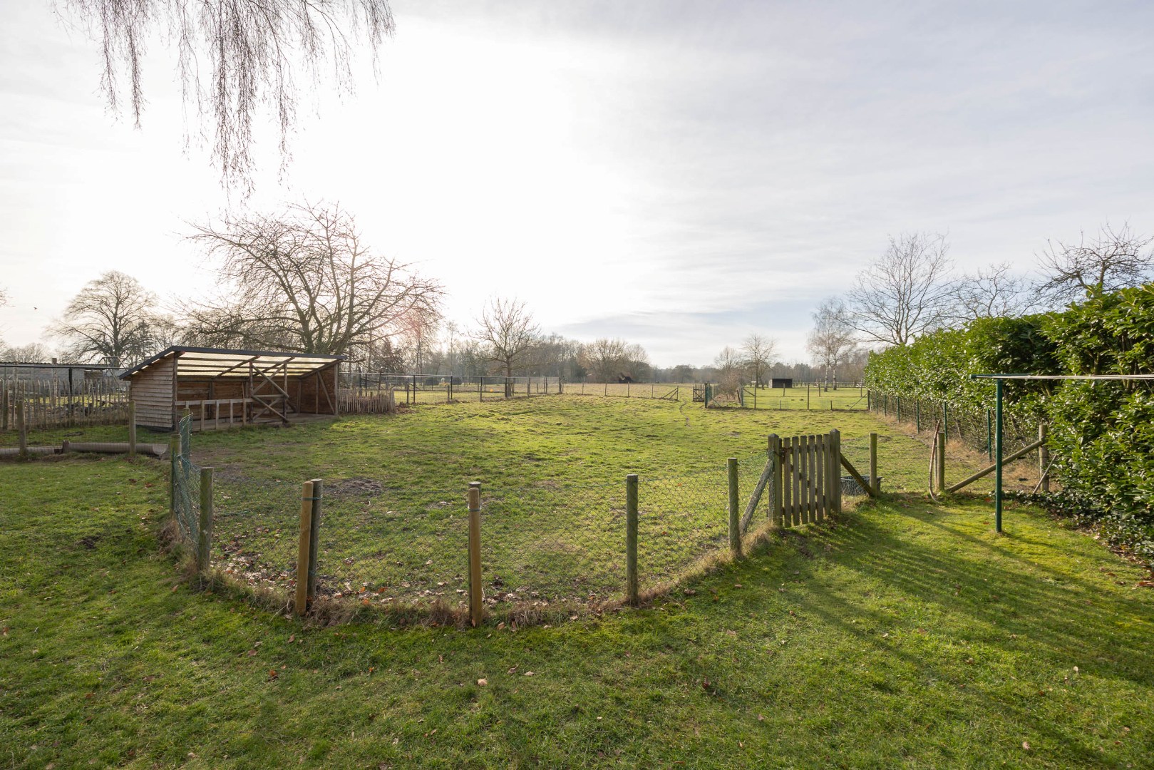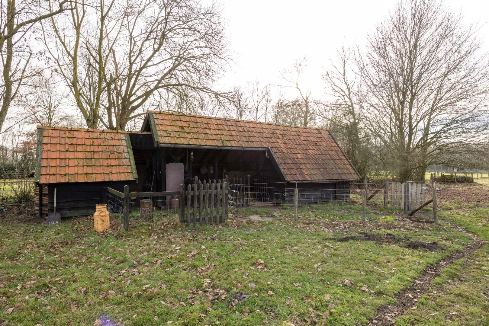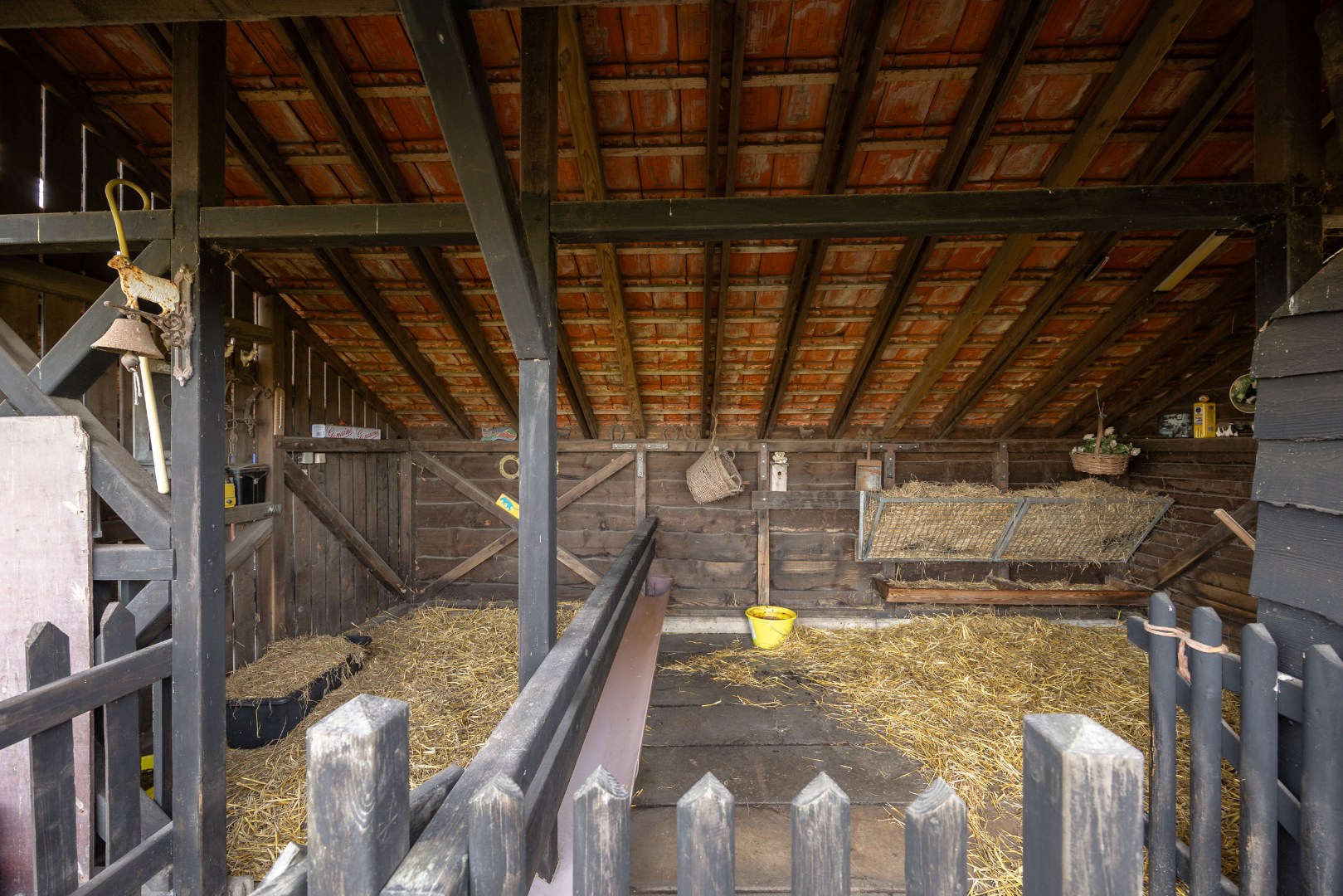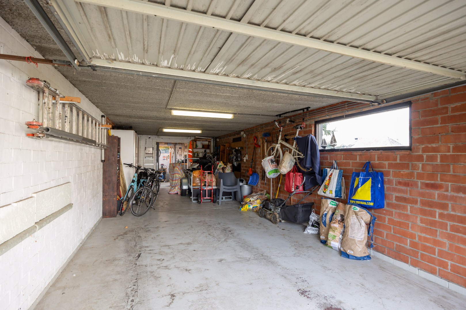 De ruime garage heeft een ruimte van +/- 60m², waar vlot twee auto's achter elkaar in kunnen en er nog werkruimte overblijft. Verder vinden we een prachtige tuin terug, die zeer verzorgd werd aangelegd met vijvertje. Ook is er een weide die netjes omheind werd, zijn er meerdere stalplaatsen die vandaag de dag functioneren voor de schapen. Uiteraard kan men dit aanpassen en gebruiken voor paarden. De weide is aanpalend en toegankelijk vanuit eigen eigendom.