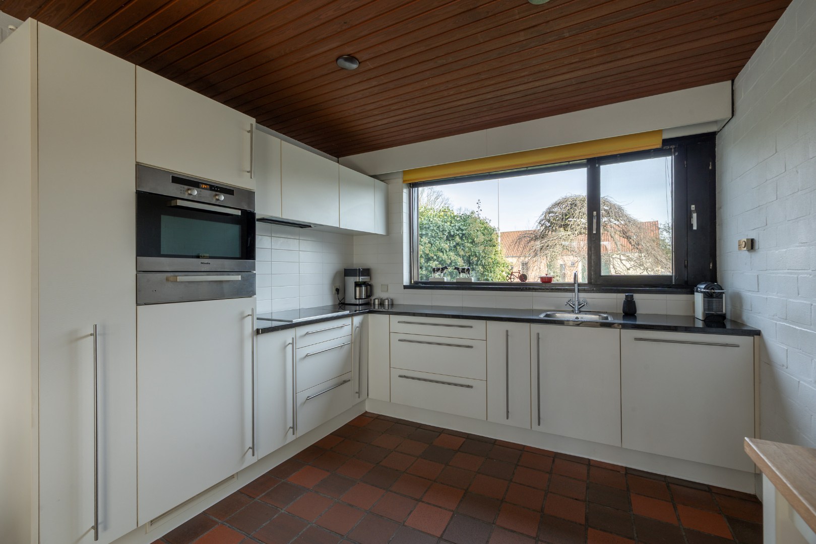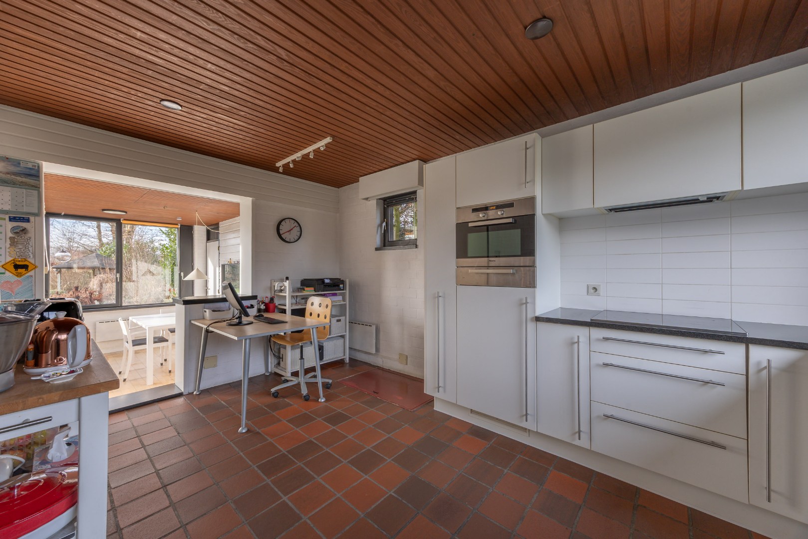Deze woning werd praktisch, speels en compact ingericht. Via de inkomhal komen we terecht in een opgedeelde leefruimte met zitkuil. Deze zitkuil is gezellig voorzien van een houtkachel en er is aansluiting met een prachtig ver zicht. De leefruimte staat vervolgens in verbinding met de keuken, die voorzien is van een 4-pits keramisch vuur, vaatwasser, koelkast en combi-oven met bordenwarmer. Ook is er een natuurstenen blad, wat laat zien dat deze keuken kwaliteit uitstraalt.