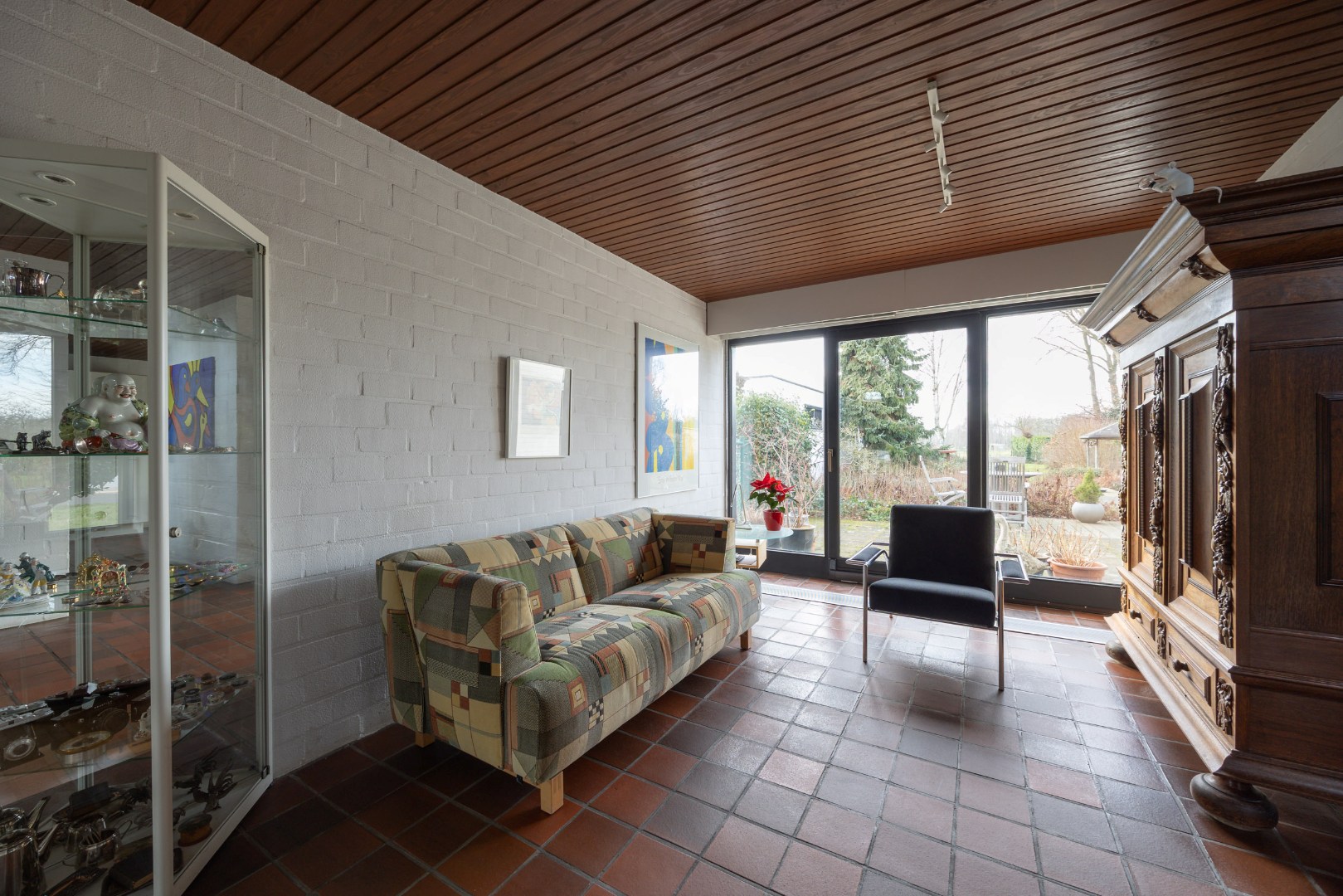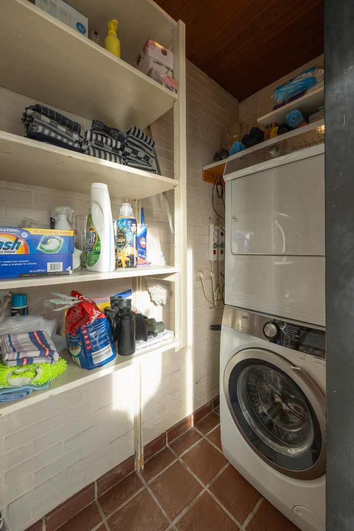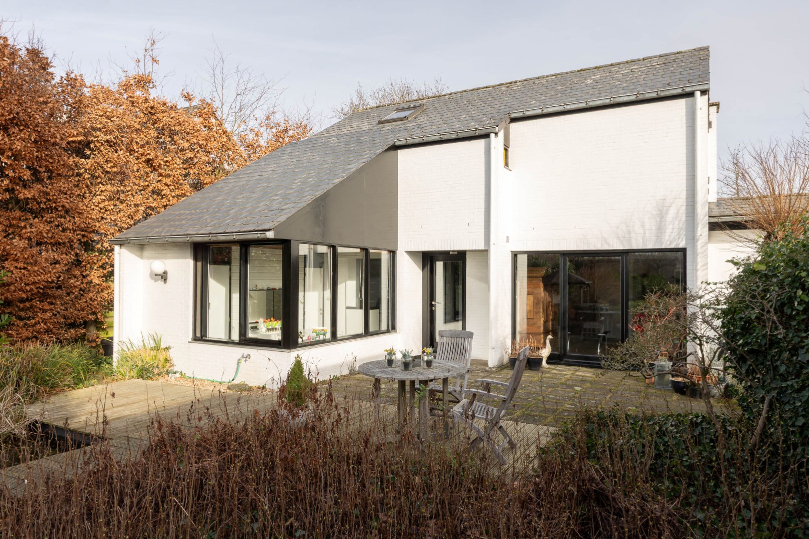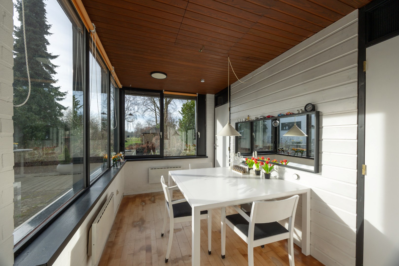 Naast de keuken bevindt zich de eetkamer. Deze is omgeven door veel glaspartijen, waardoor het voelt alsof u rustig in eigen tuin zit te genieten. Vanuit de keuken is er ook toegang tot de kelder (hier hangt de elektrische boiler van 2 jaar oud). Verder vinden we gelijkvloers nog een berging, apart toilet en een douchekamer.