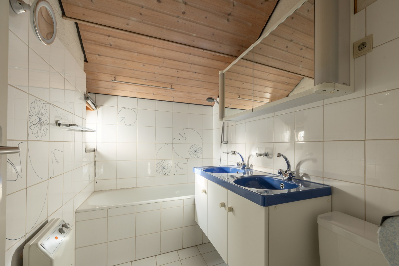 Op verdiep zijn er vervolgens 3 slaapkamers. De twee kleinere kamers werden opgesplitst door een kastenwand, waardoor het perfect mogelijk is om hier ook één grote slaapkamer van te maken. De derde slaapkamer heeft een mooi formaat en is voorzien van inbouwkasten. Verder vinden we op dit verdiep de hoofdbadkamer, die voorzien is van een bad, dubbele lavabo en tweede toilet.